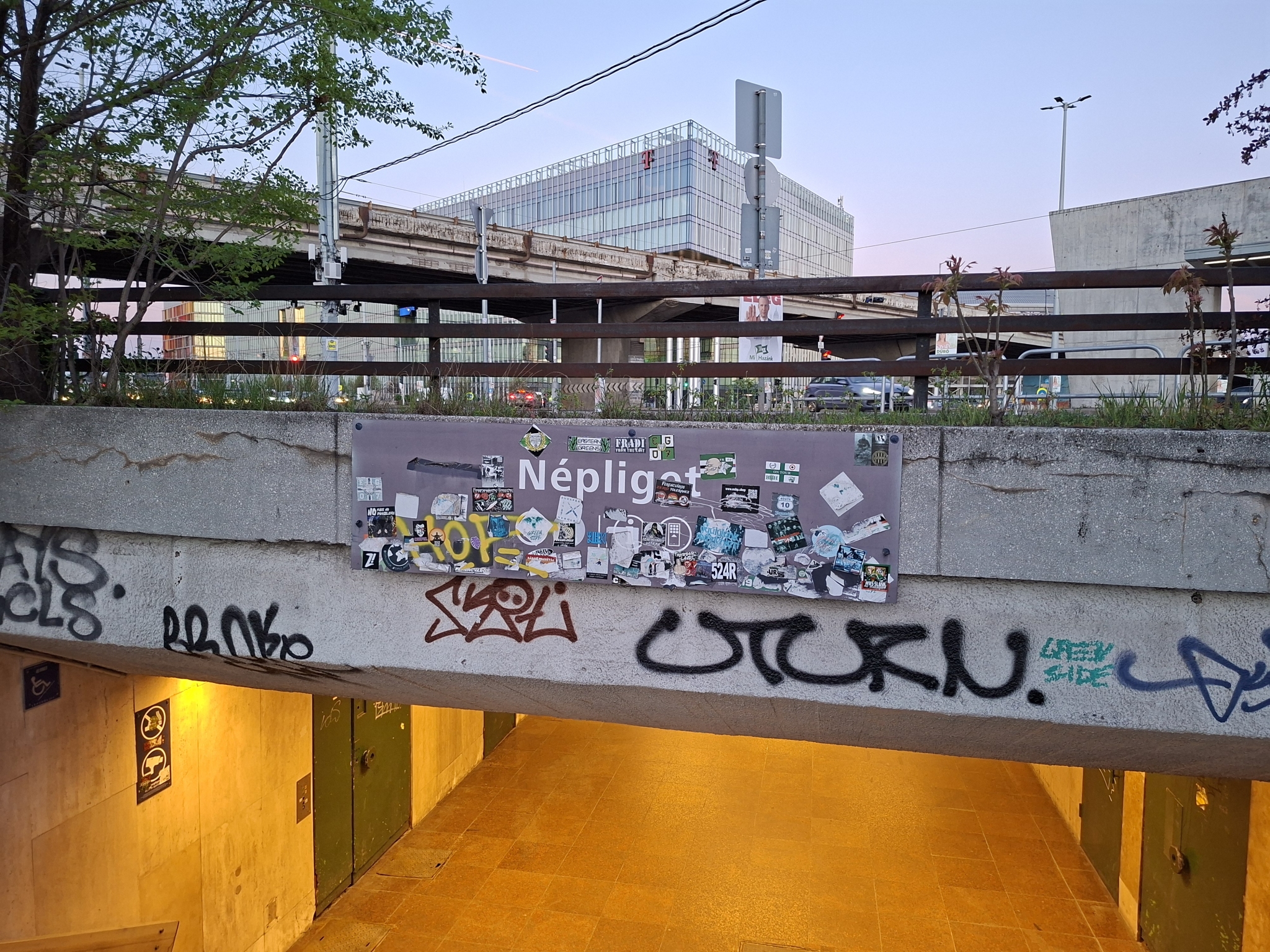 Népliget (D kijárat) aluljárónál látható tájékoztató tábla tele van rakva matricákkal és lassan olvashatatlan lesz.