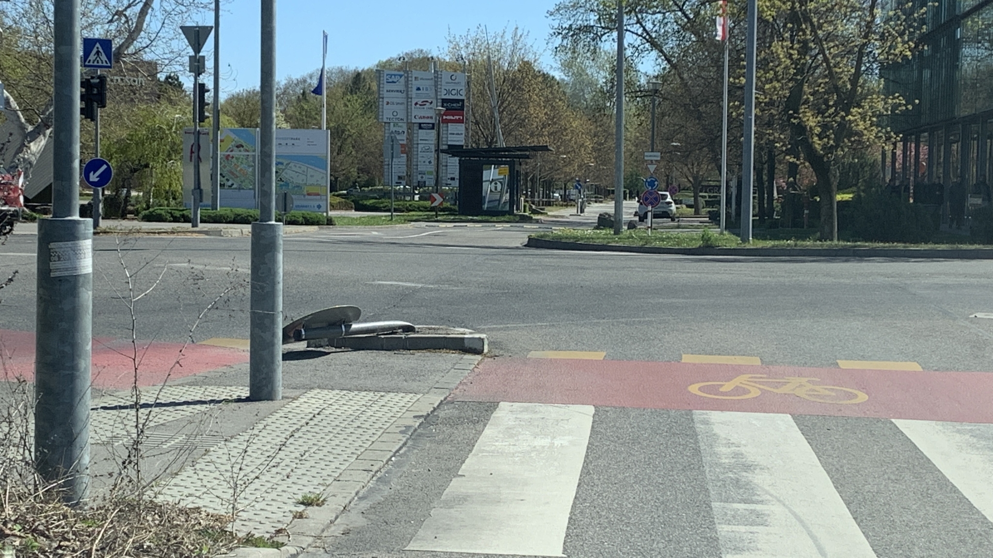 Ismét kidöntötték a táblát. (lásd https://jarokelo.hu/190814) Április 7-i, kb. délelőtt 11 órás állapot.