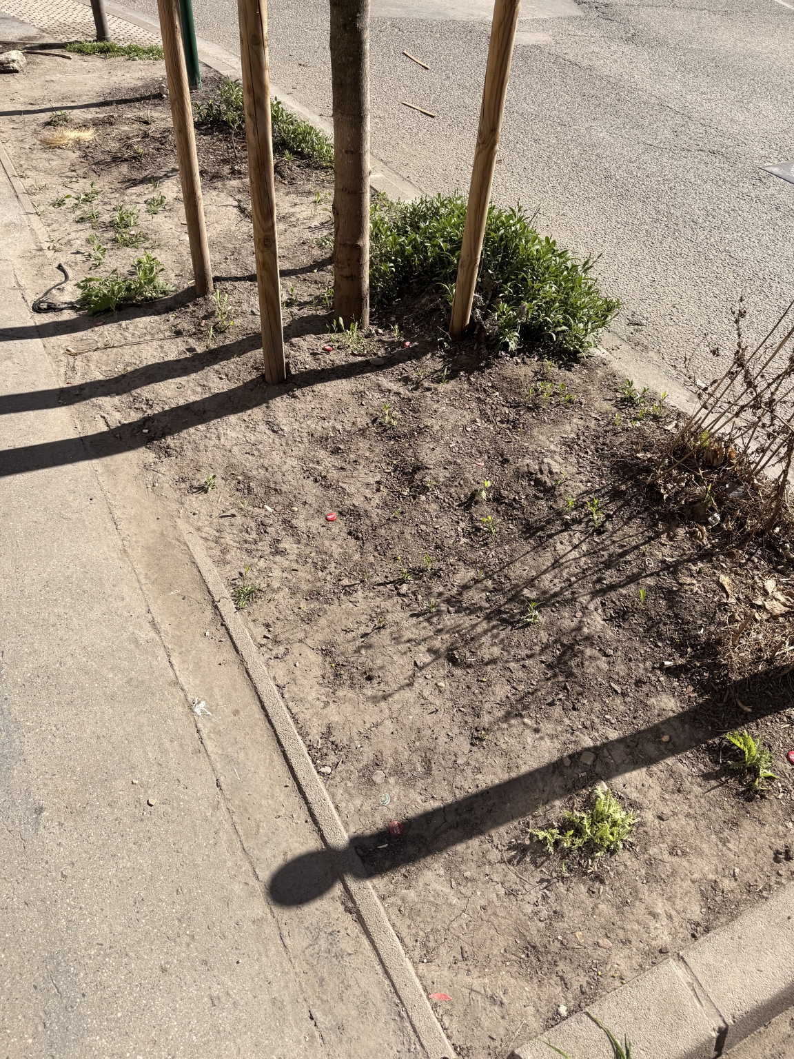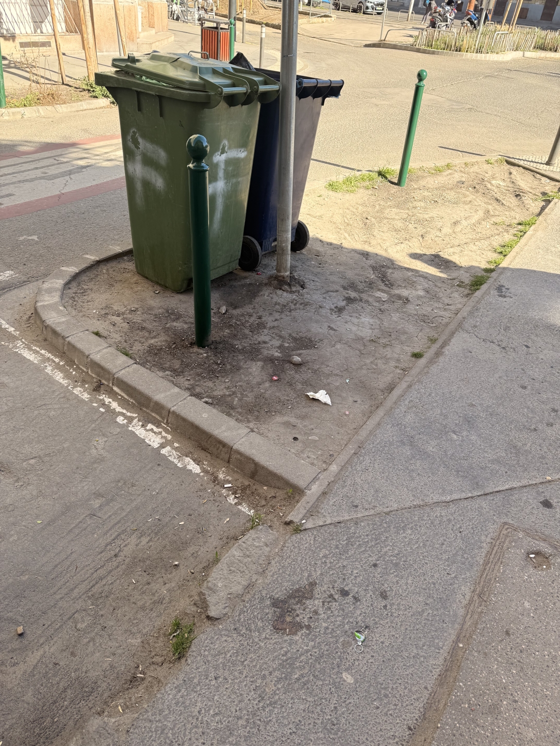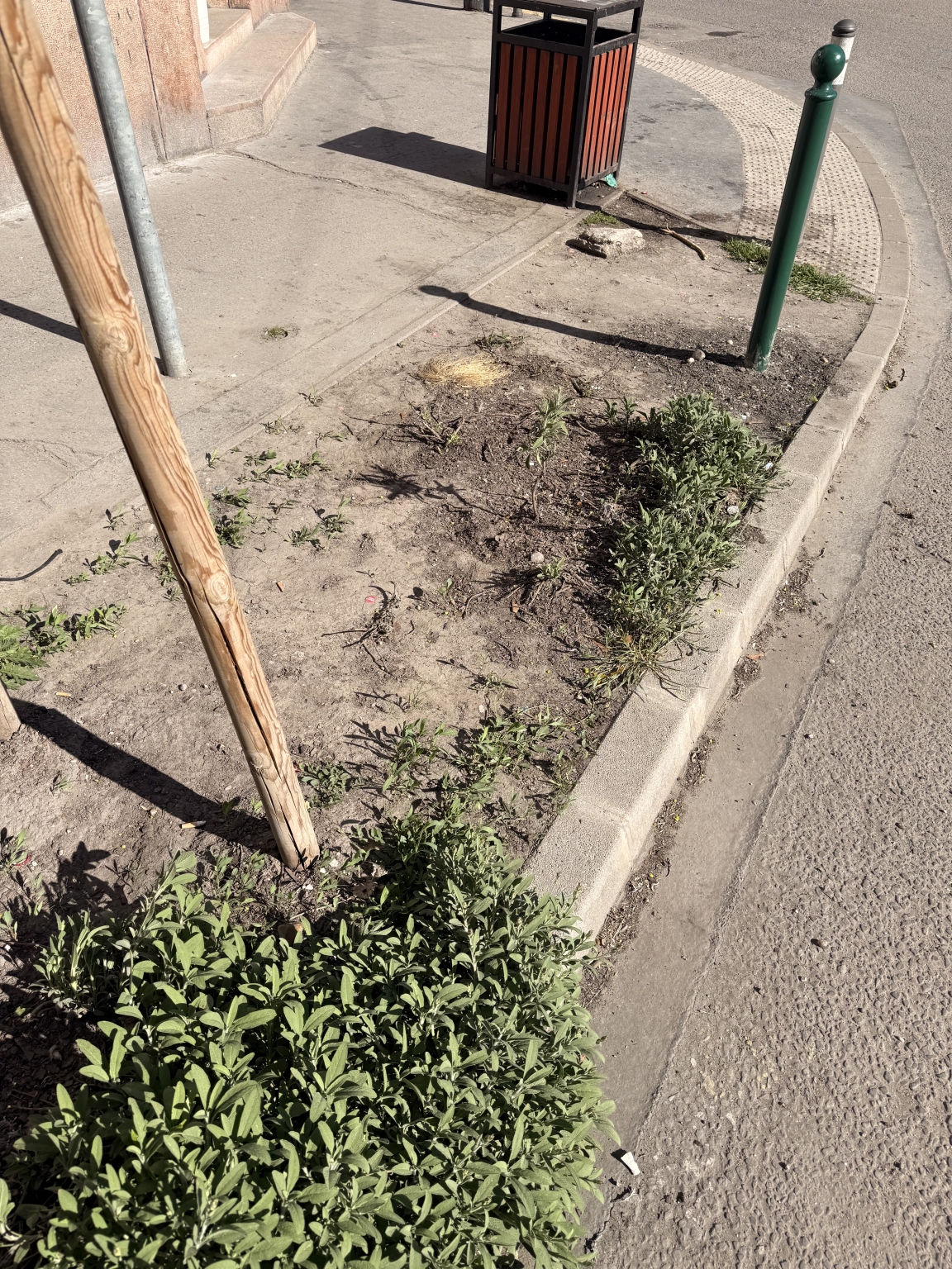 1-2 éve lett kialakítva, de akkor nem került kerítés köré, így kidobott pénz lett az ide ültetett növényekből. Jelenleg kukát tárolnak itt. Miért nem gondozza senki? Miért nincs kerítés? Miért nem jelzik a kuka tulajdonosának, hogy ne itt tárolják a szemeteseket?