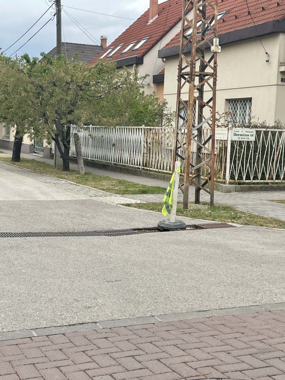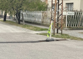Szeretném megkérdezni, hogy mikor lesz megoldva a probléma? Egy oszlop lett odarakva egy zöld láthatósági mellénnyel, ami figyelmeztet az úthibára de javítás azóta se történt.