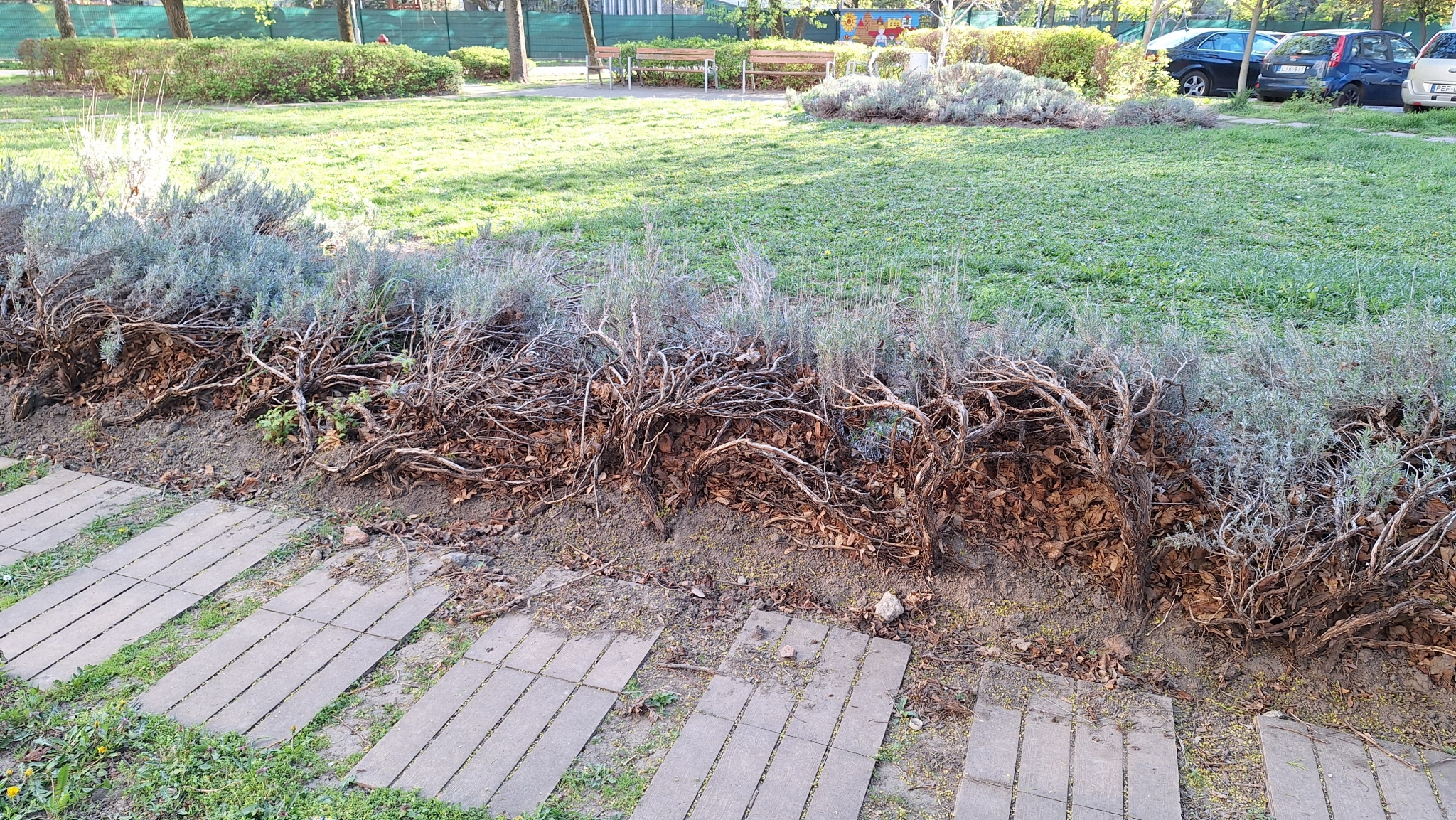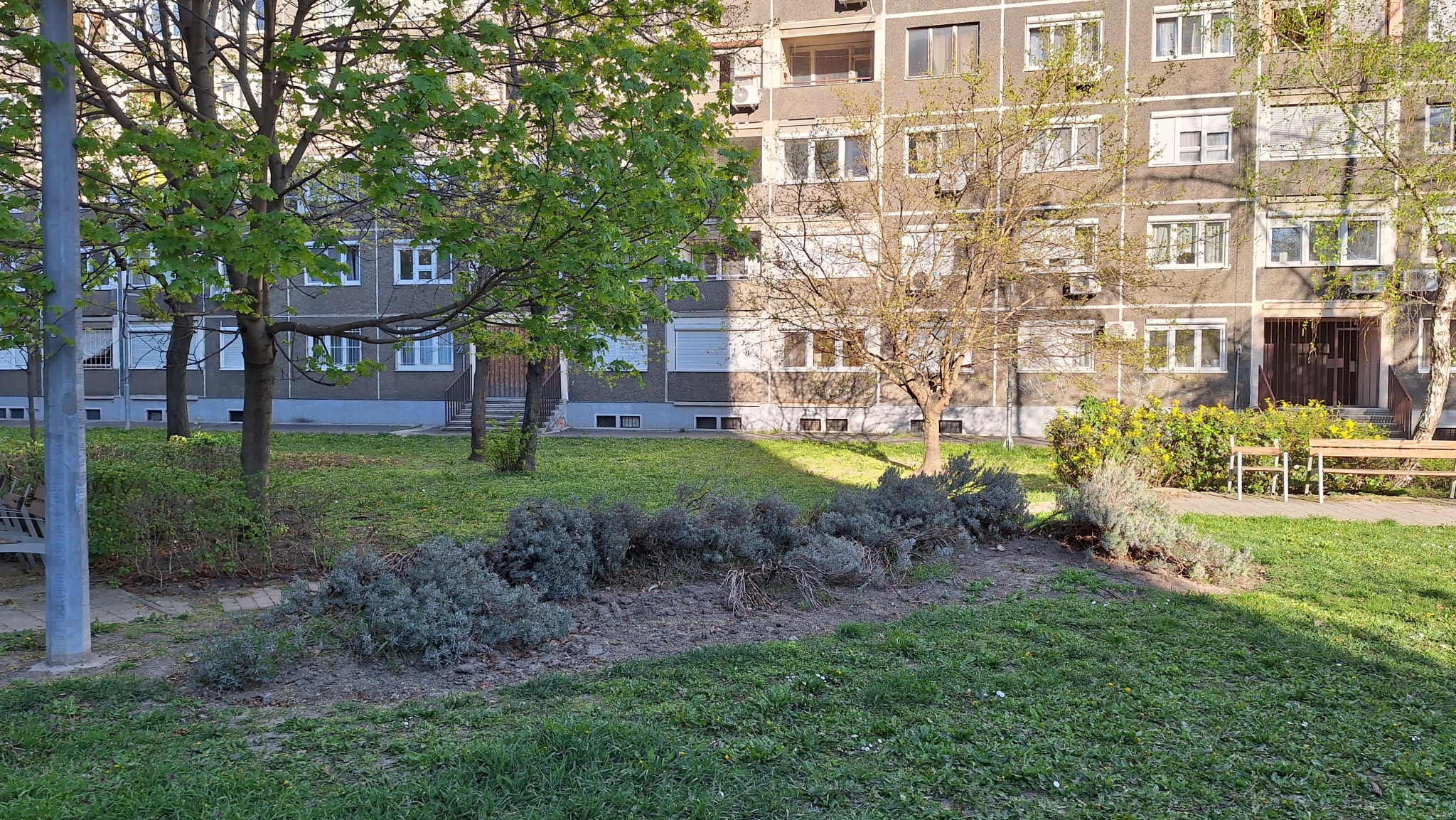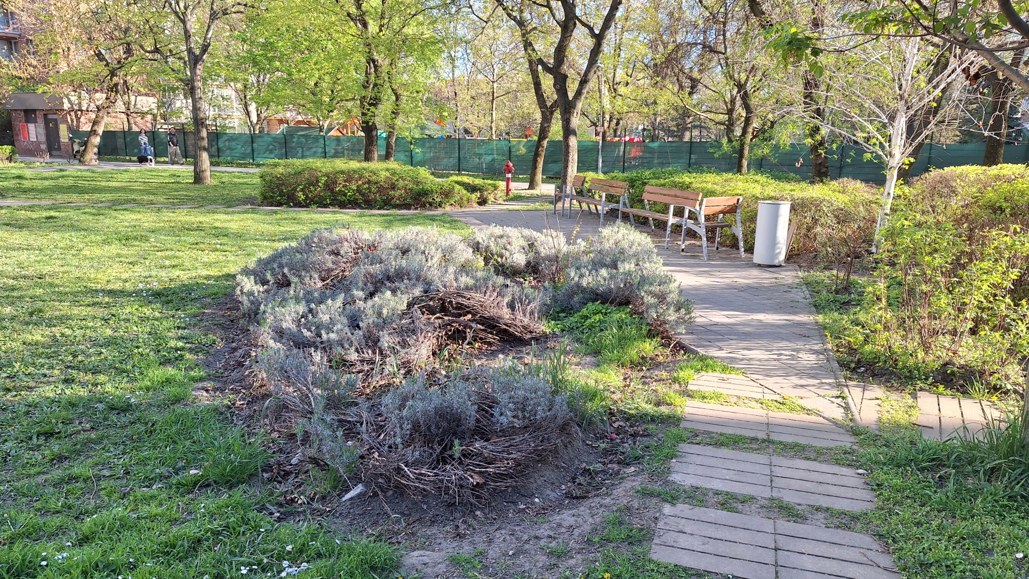 Az Etele út 52. előtti parkban a cserjék, bokrok (talán kúszó boróka) több helyen elöregedtek, kiszáradtak, megritkultak. Szükség lenne egy alapos metszésre, új növények ültetésére.