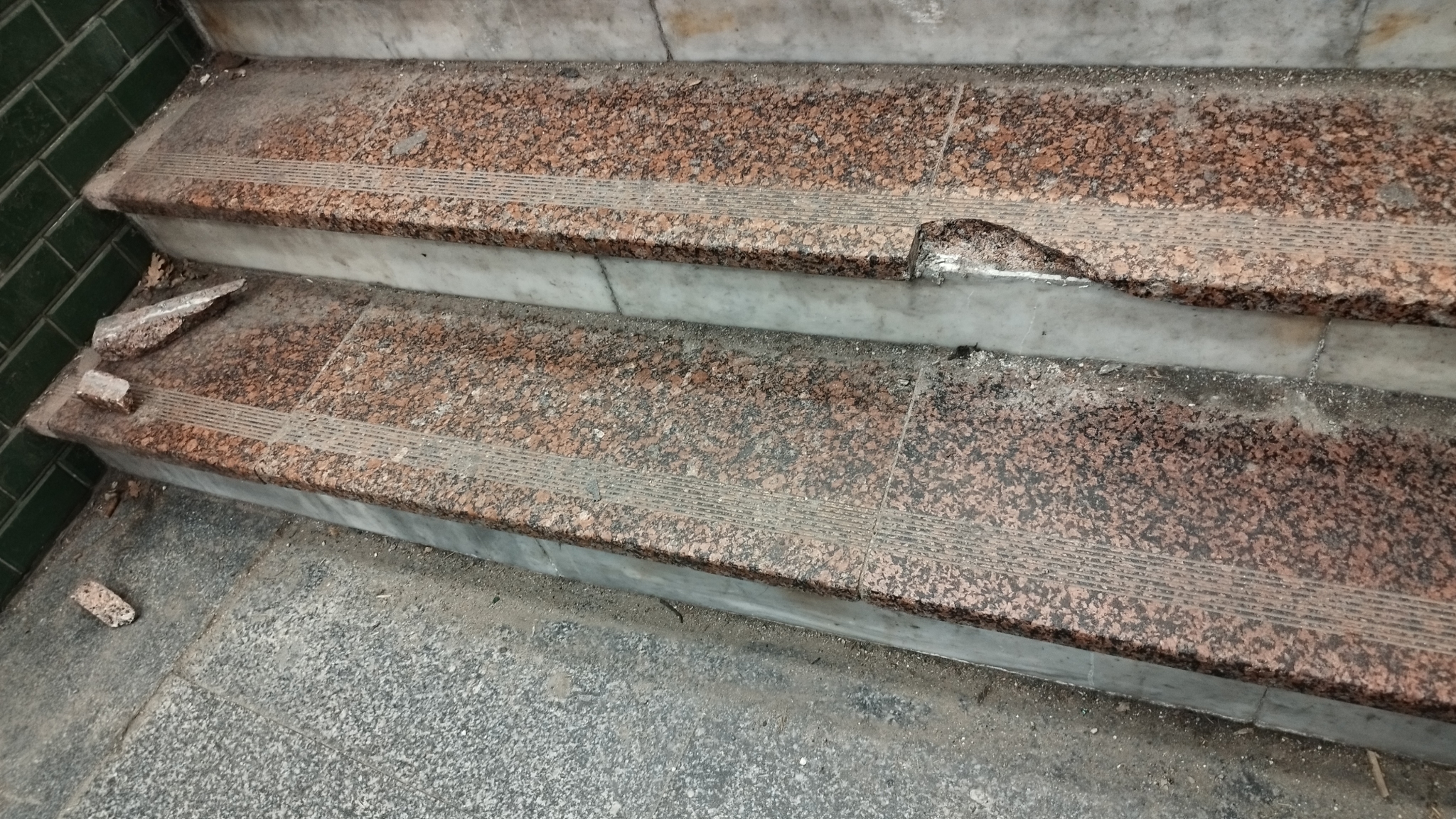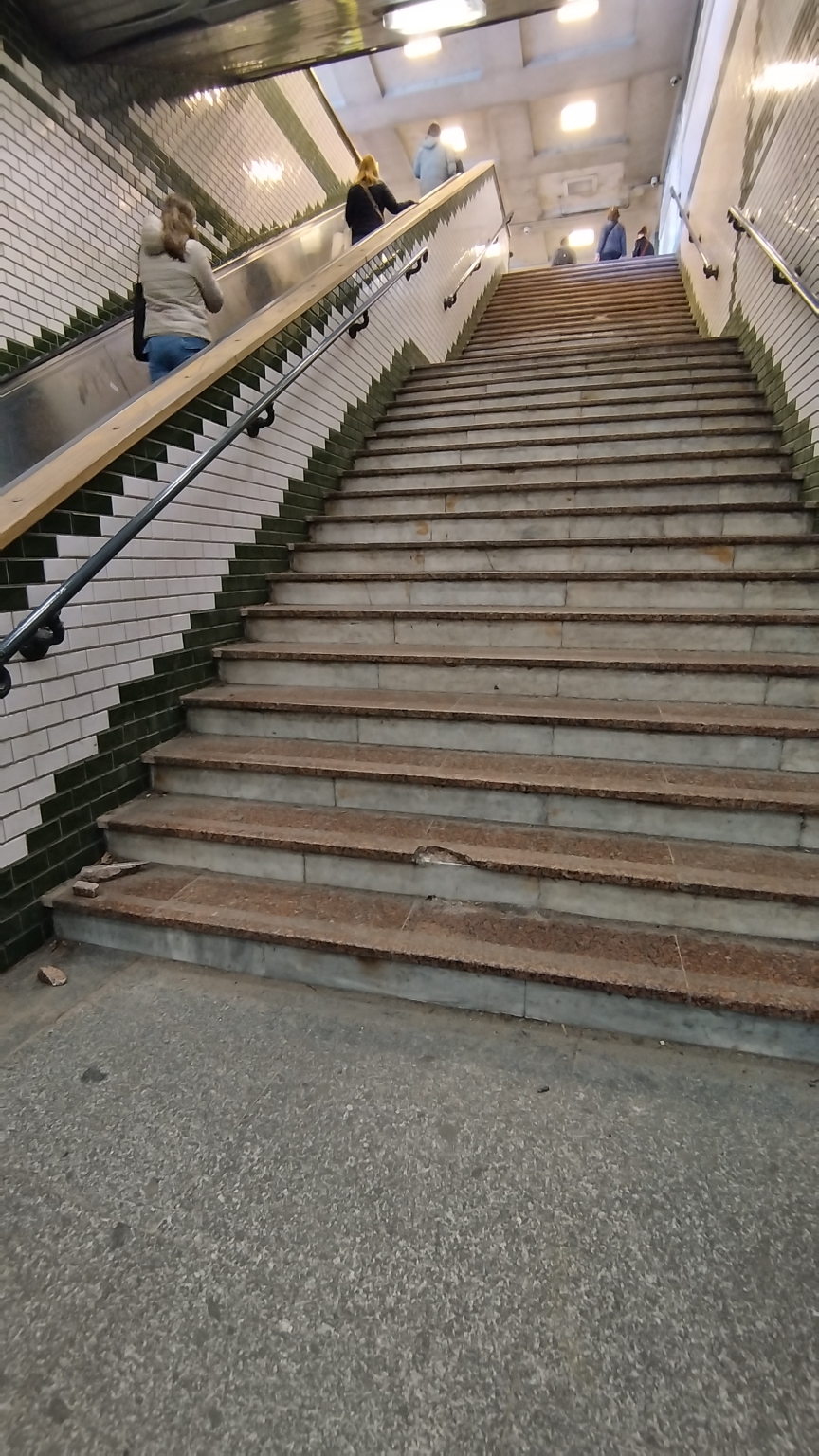 Lent a vágányok szintjén a Batthyány tér felé menő HÉV levezető lépcsője.