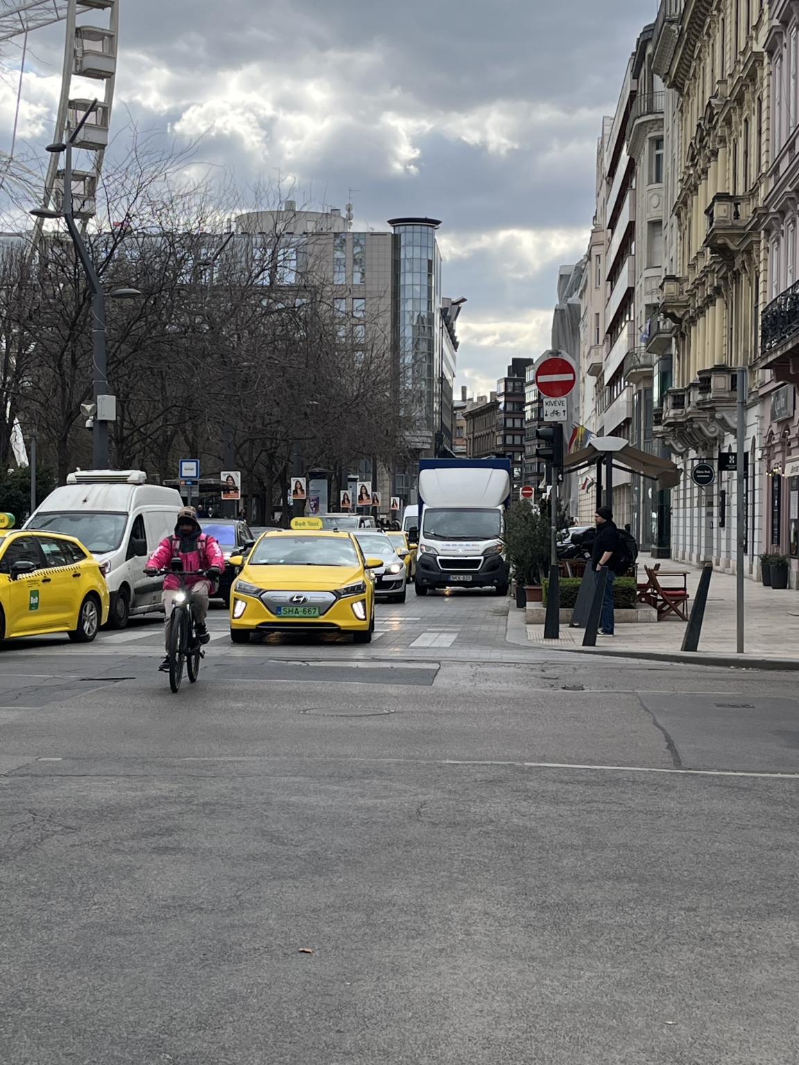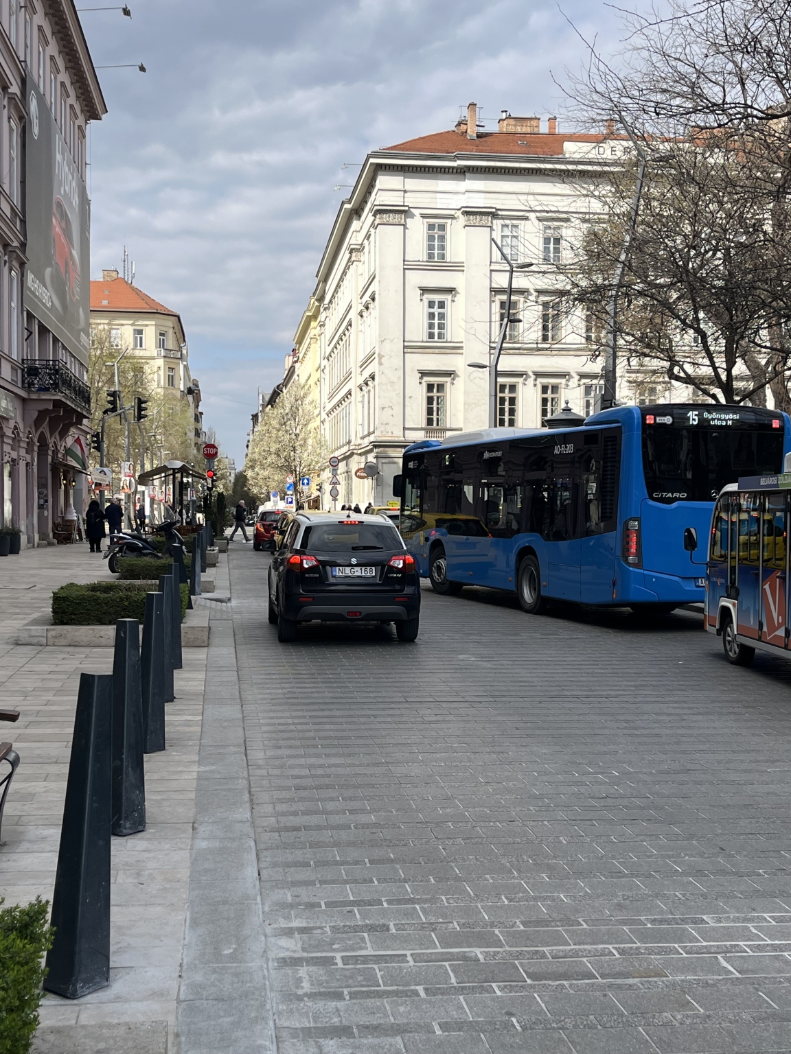 Sajnos márciusra már lekopott az Bécsi utca Erzsébet téri végén a József Attila utcánál lévő ellenirányú kerékpársáv. Ennek hiányában az autóvezetők nem megfelelően állnak, így akadályozzák a behajtást. Esetleg rövid életű felfestés helyett a sáv vonalát eltérő színű térkővel is ki lehetne rakni, mint a sarki gyalogátkelőnél lévő jelzéseket.