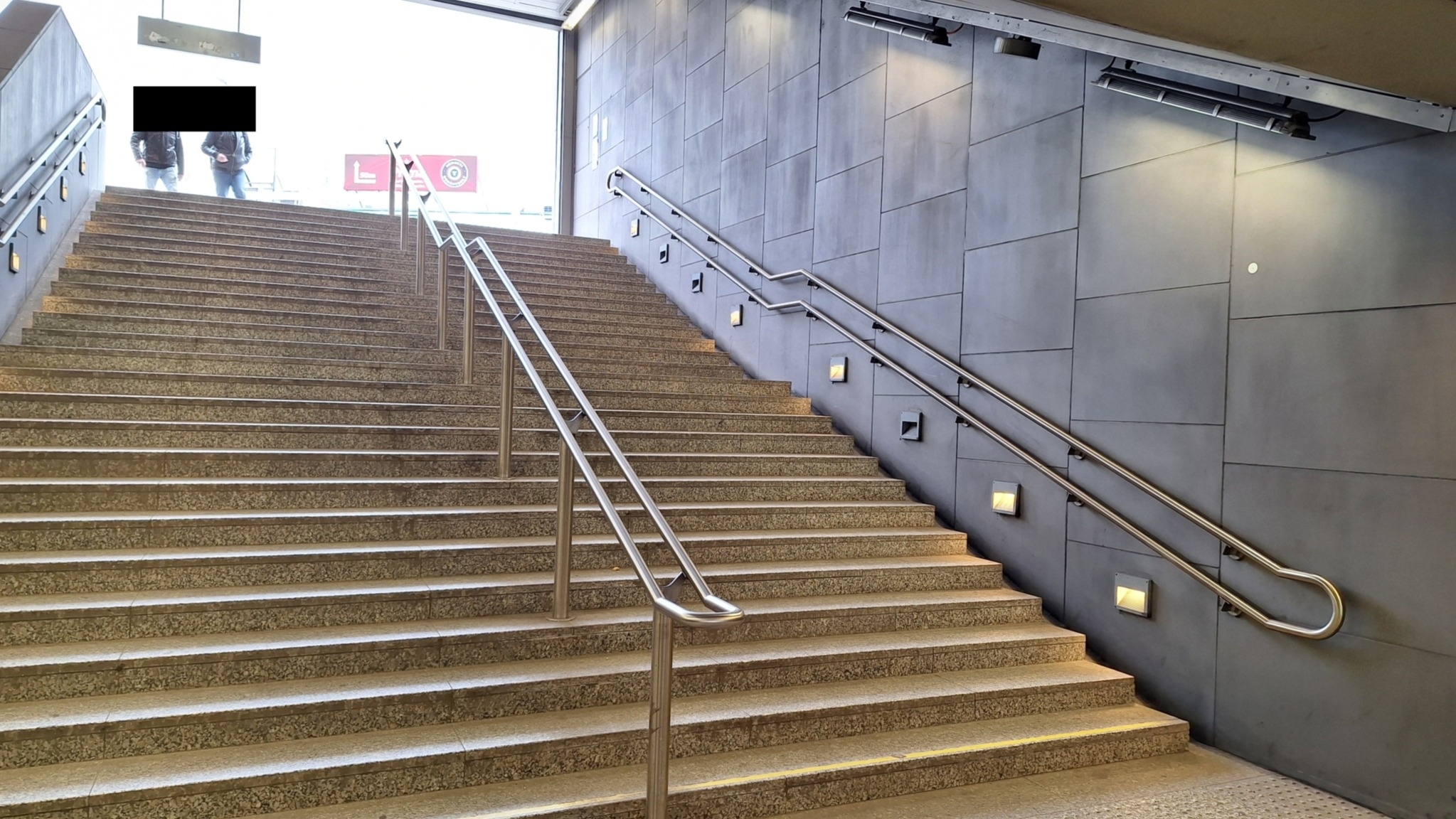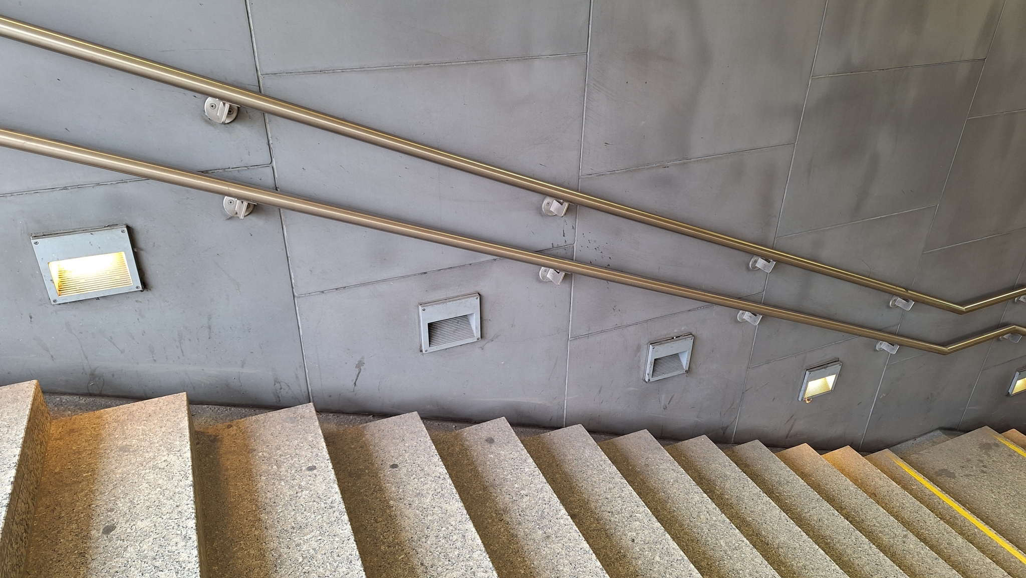 A 4-es metró Bikás park állomására vezető lépcsősor több oldalsó lámpája kiégett.