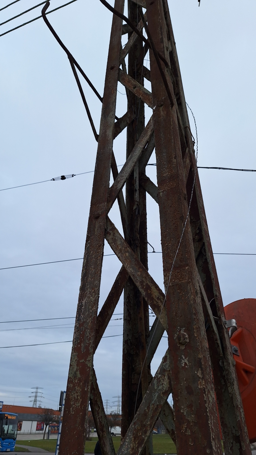 A 2b villamos Gubacsi út / Határ út megállója mellett álló egyik felsővezetéktartó oszlop szerkezetében végigfut egy megszakadt kábel, ráadául a vascső is több helyen meg van törve, szét van rohadva, amiben fut.