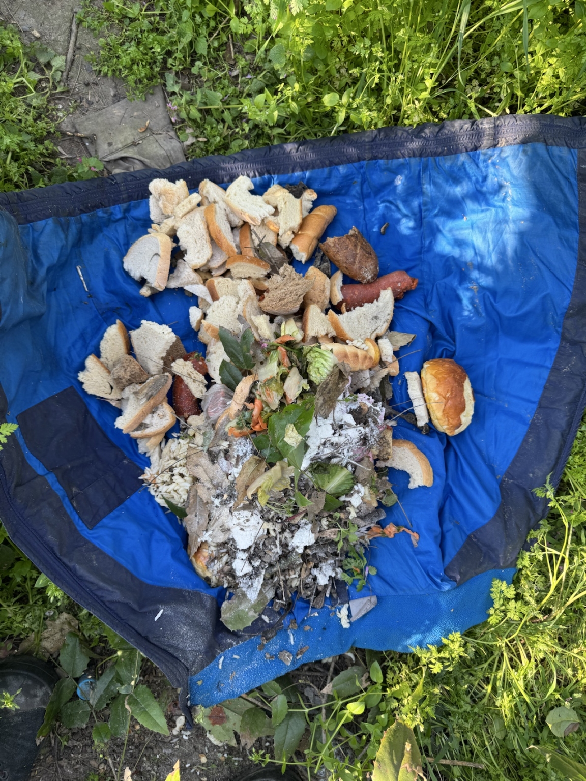 Mai napon majdnem 5 kg különféle élelmiszert (kolbász, zsömle, puding, főtt rizs és tészta, kukoricadara, alma, zöldség...) szedtem össze amit egy hét alatt hordtak össze a patkányvár bejáratához.
