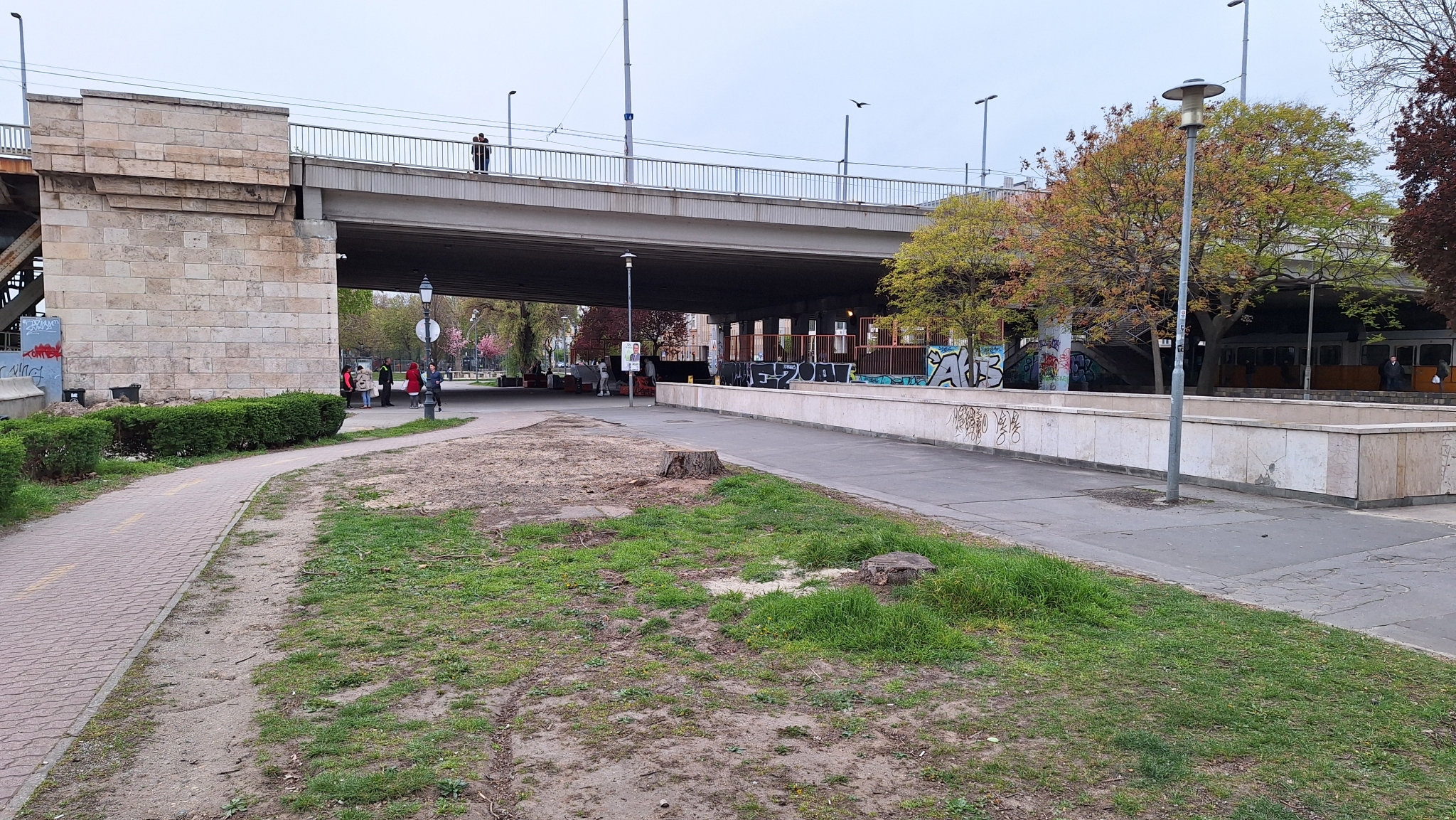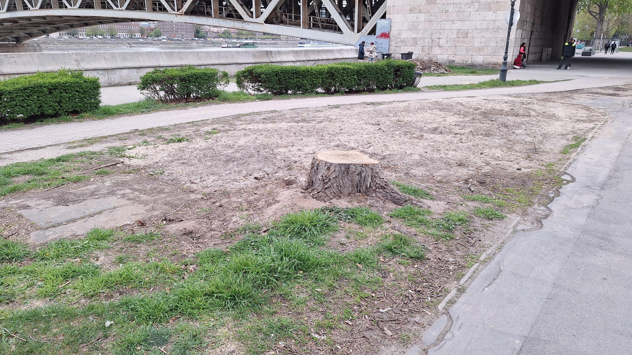 A Boráros téren a rakparton, nem messze a híd lábától van két fatuskó.
