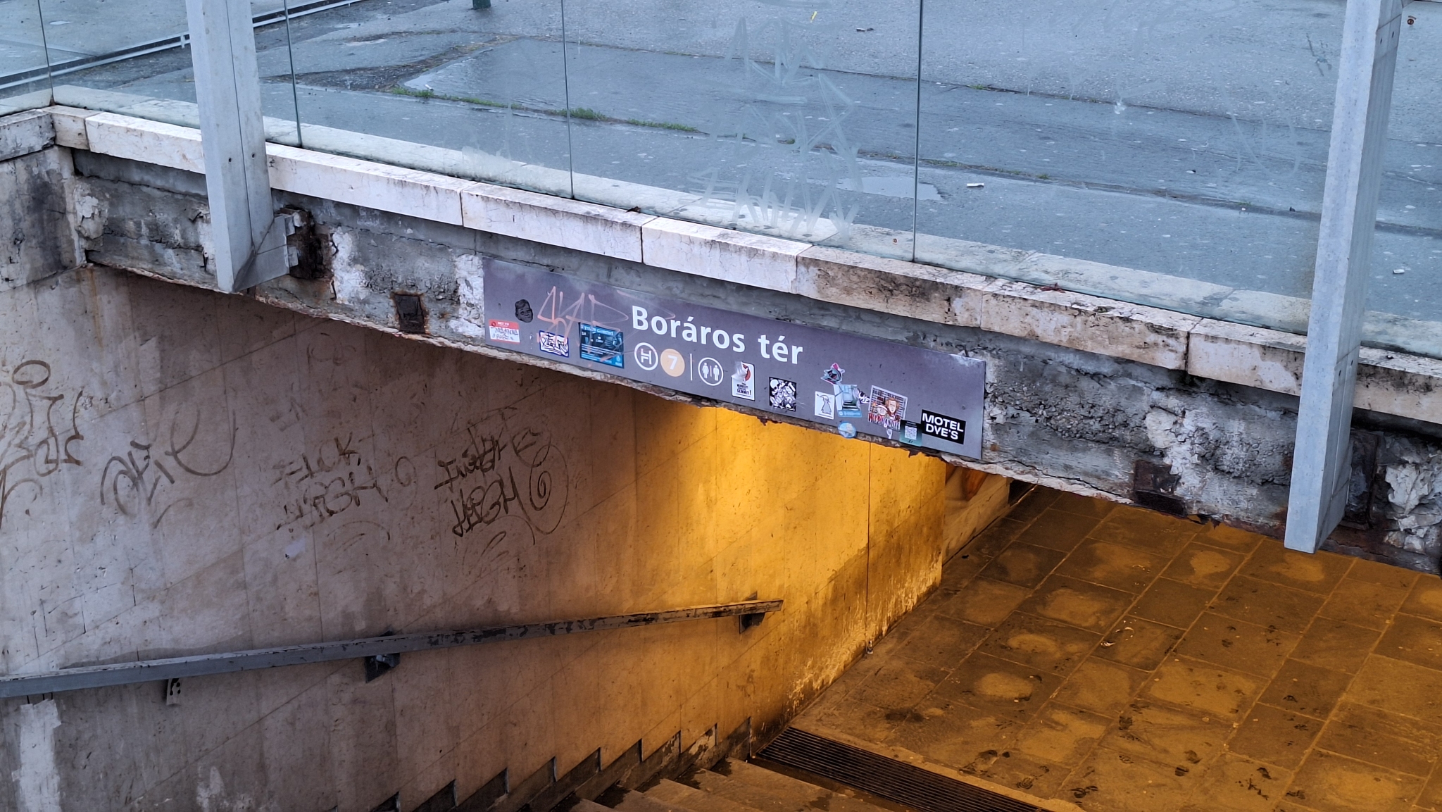 A Boráros téri aluljáró több kijárata fölött kifakult, telematricázott táblák vannak, de valahol a betonfödém is elviselne egy bevakolást, újrafestést.