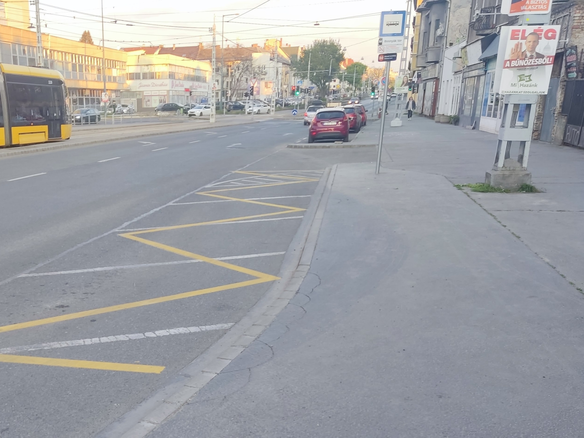 Ellentmondásos felfestés. Buszmegálló? Parkoló?