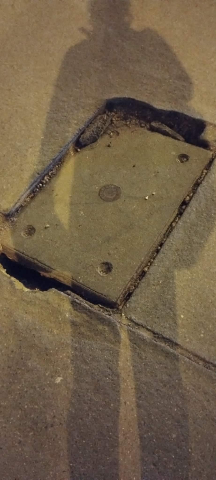 Veszélyes, romos aknafedél