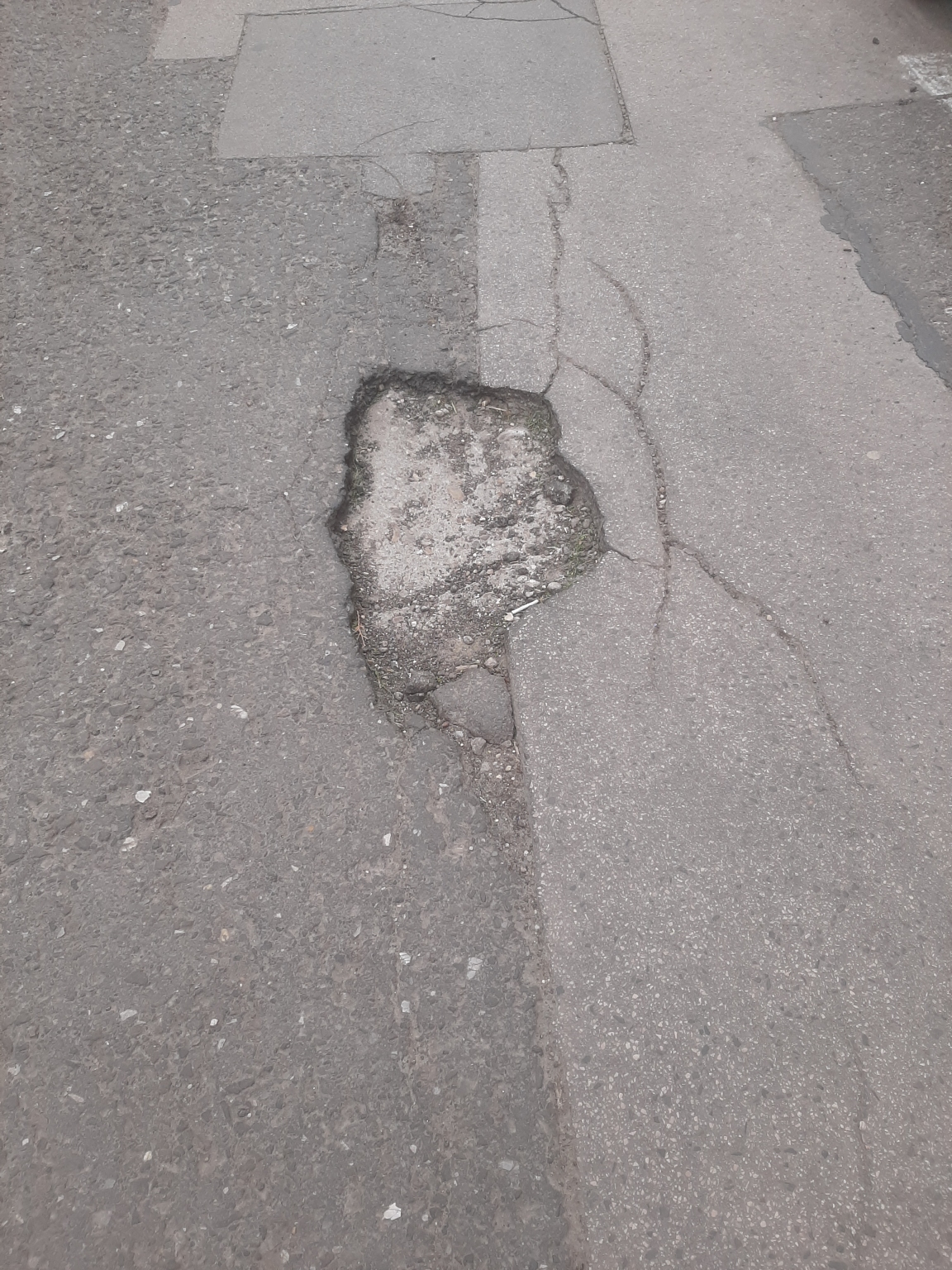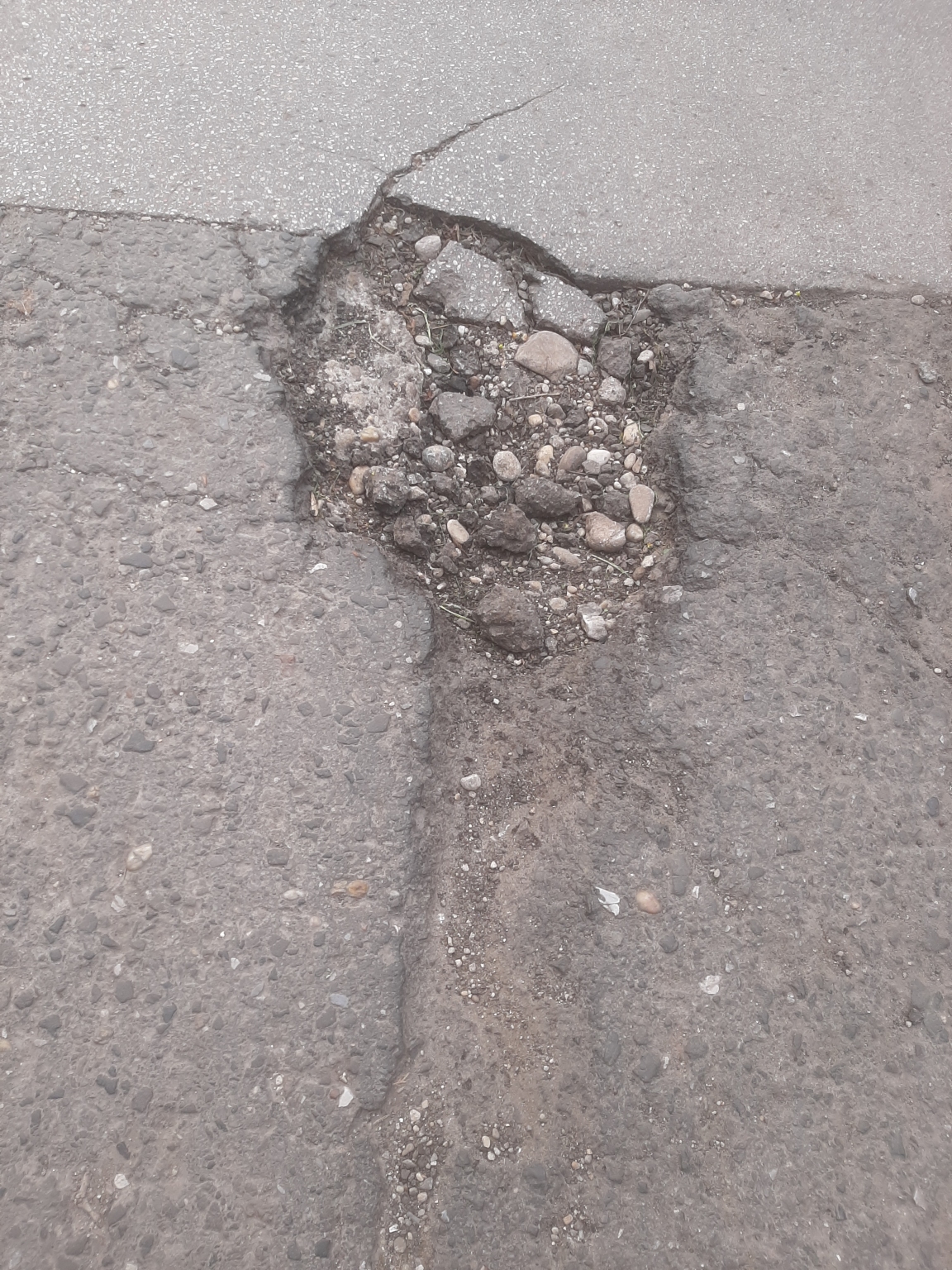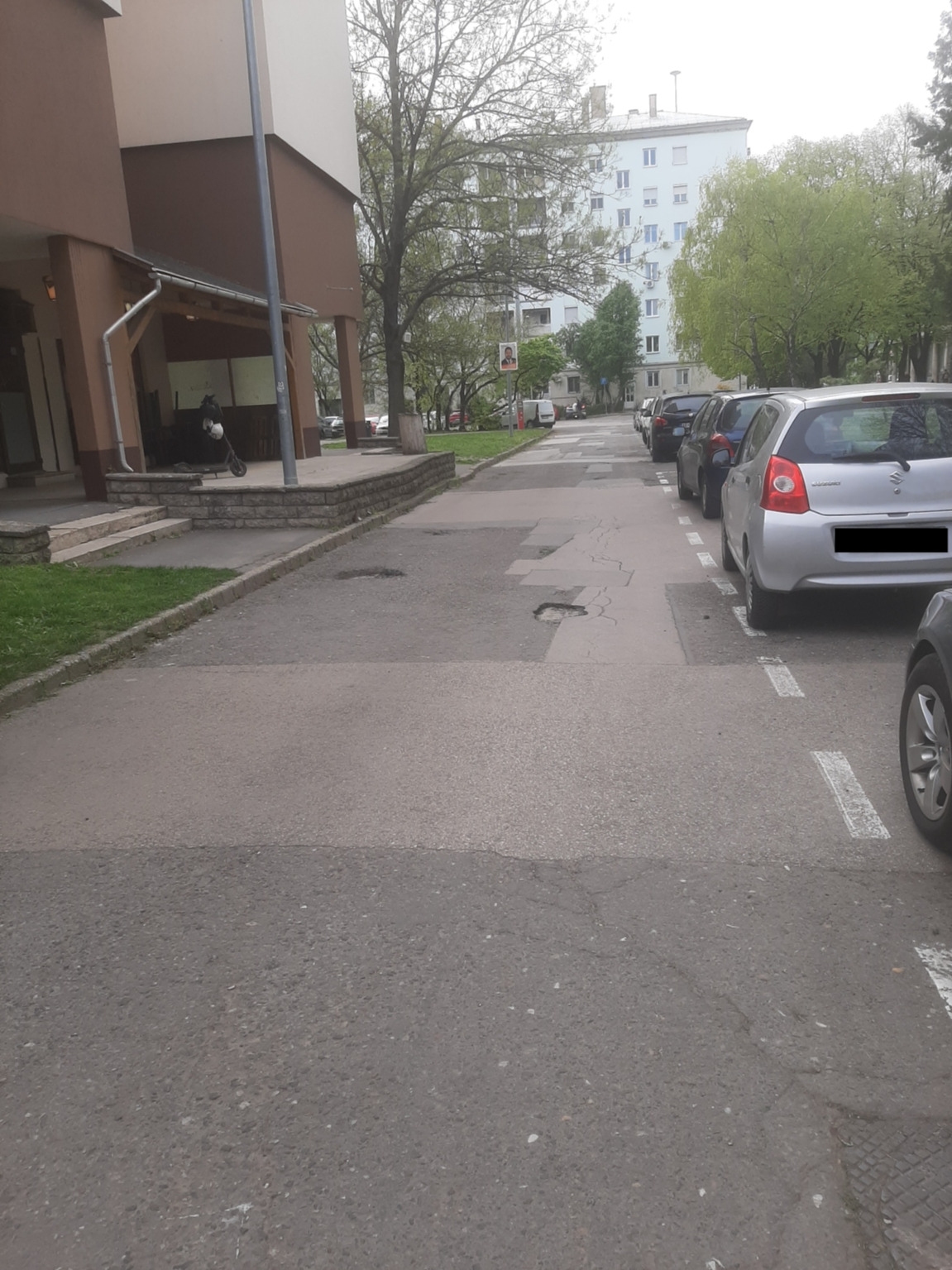 Kérem a kátyúk feltöltését, mert a parkolókhoz vezető út így balesetveszélyes, károkozásra alkalmas.