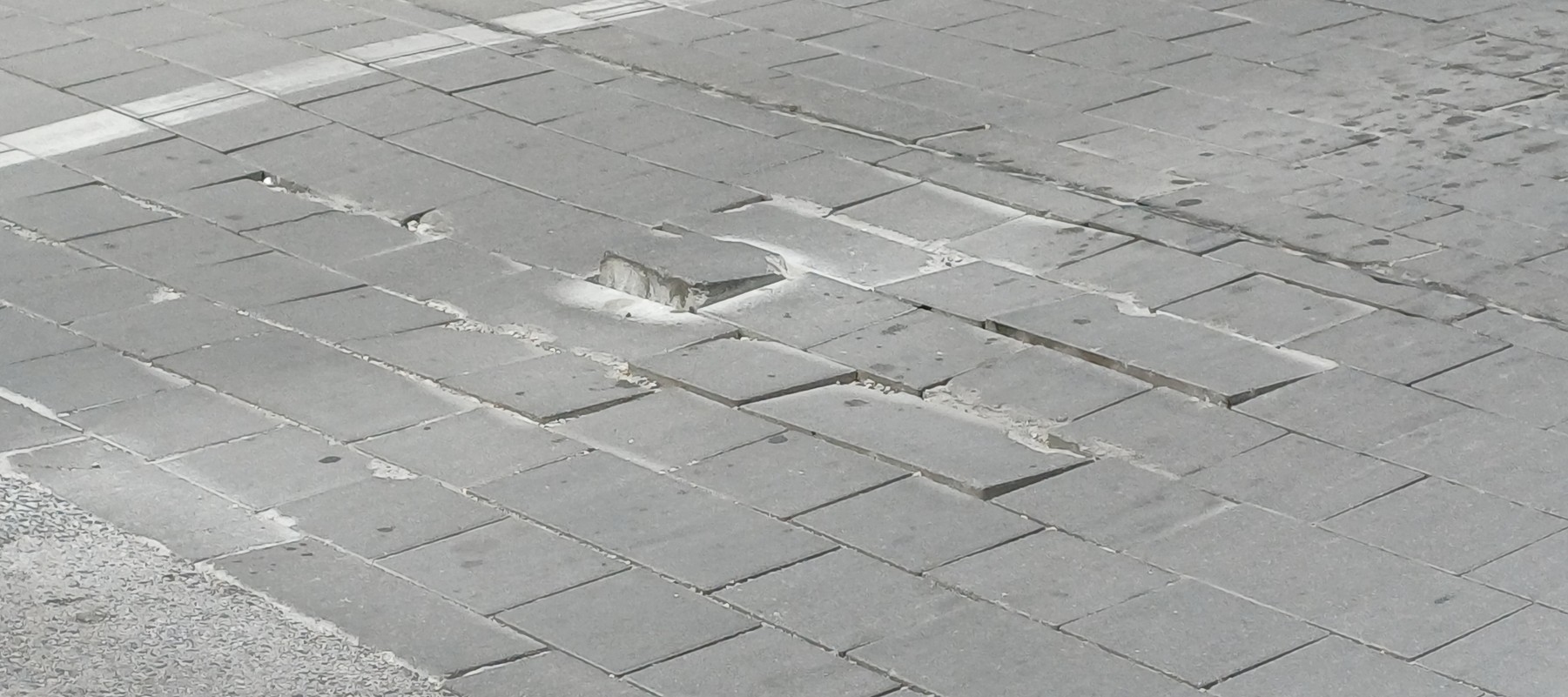 Kiálló térkő az Atlétikai stadion előtt