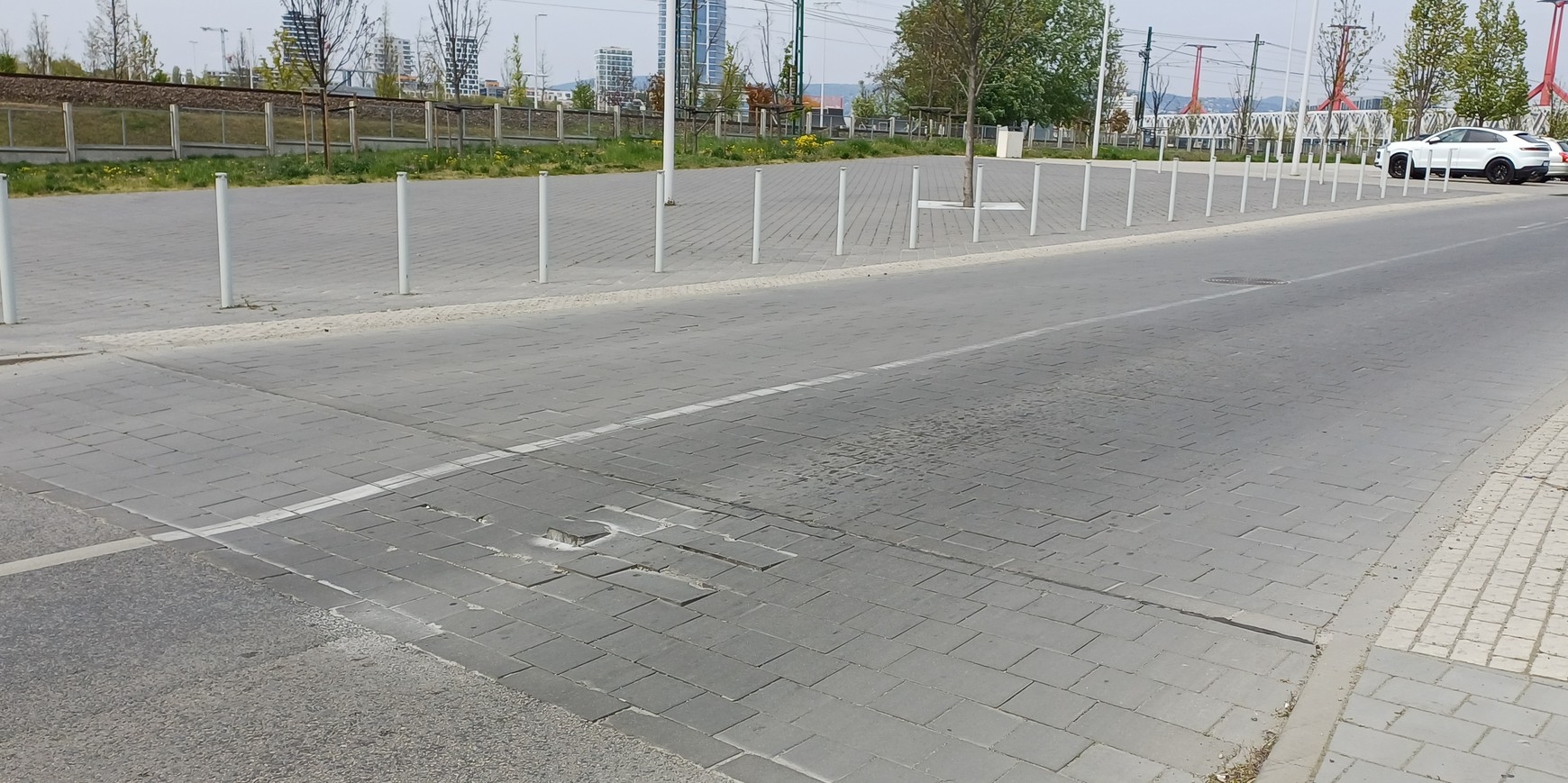 A stadion előtti úton a viacolor egyik darabja 4-5cm-re kilóg.