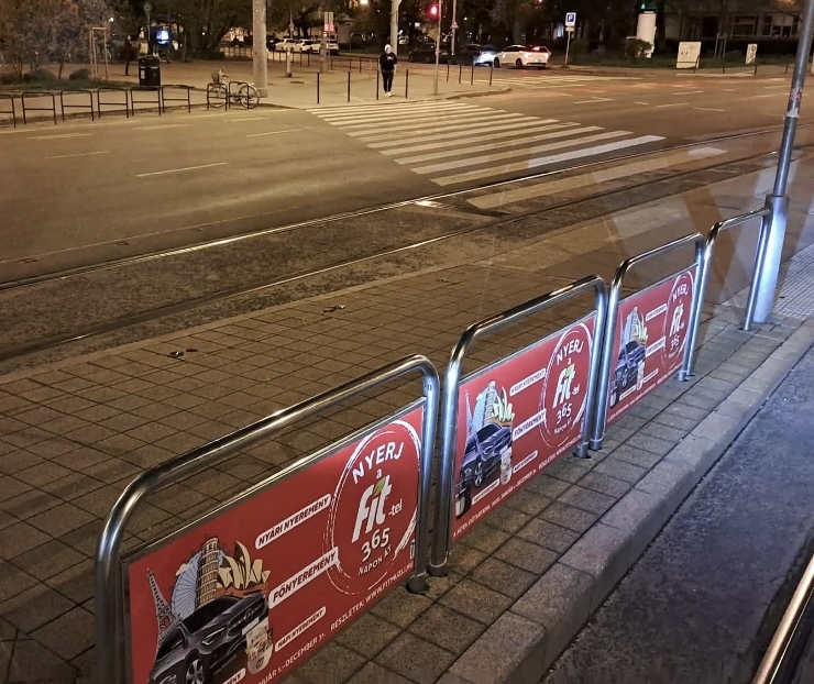 A villamos megállóhely végéről az U alakú csőkorlát eltűnt, balesetveszélyes.