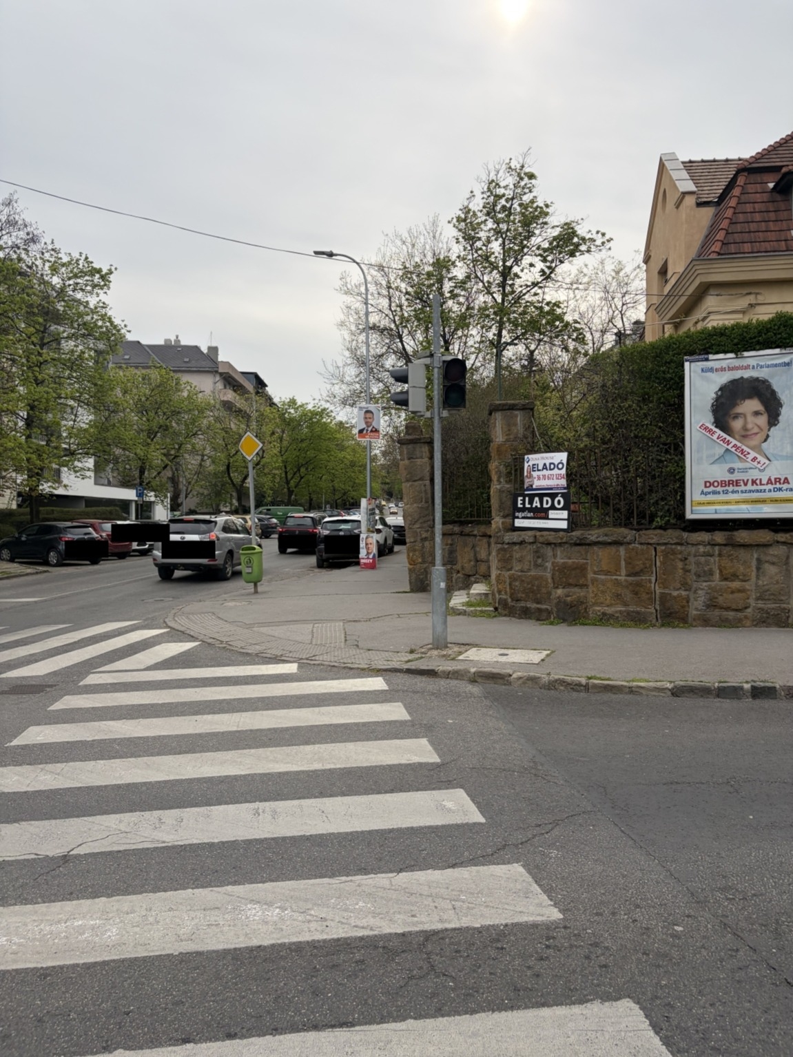 A gyalogátkelőhely elhelyezett gyalogosoknak való jelzőlámpának valószínűleg kiégett a zöld lámpa része ahogy a Németvölgyi út megy át a Királyhágó téren.