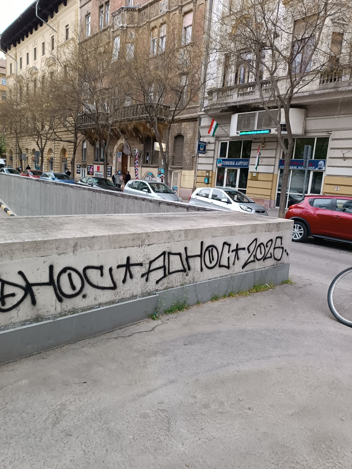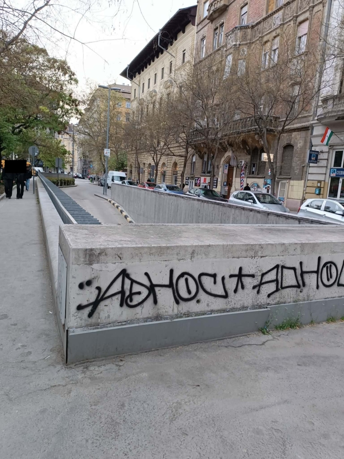 Graffitis a Rákóczi tér mélygarázs bejaratanak fala