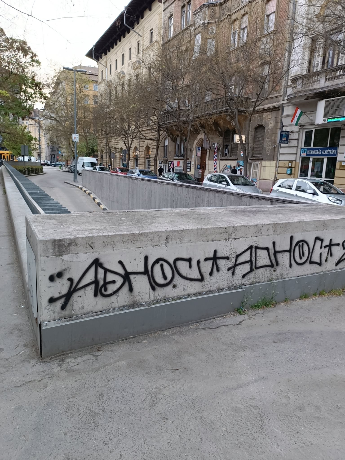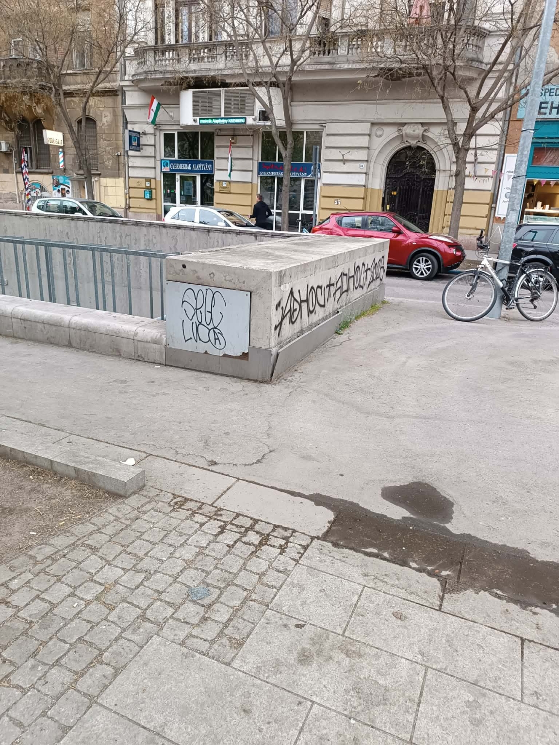Graffitis a Rákóczi tér mélygarázs bejáratának fala