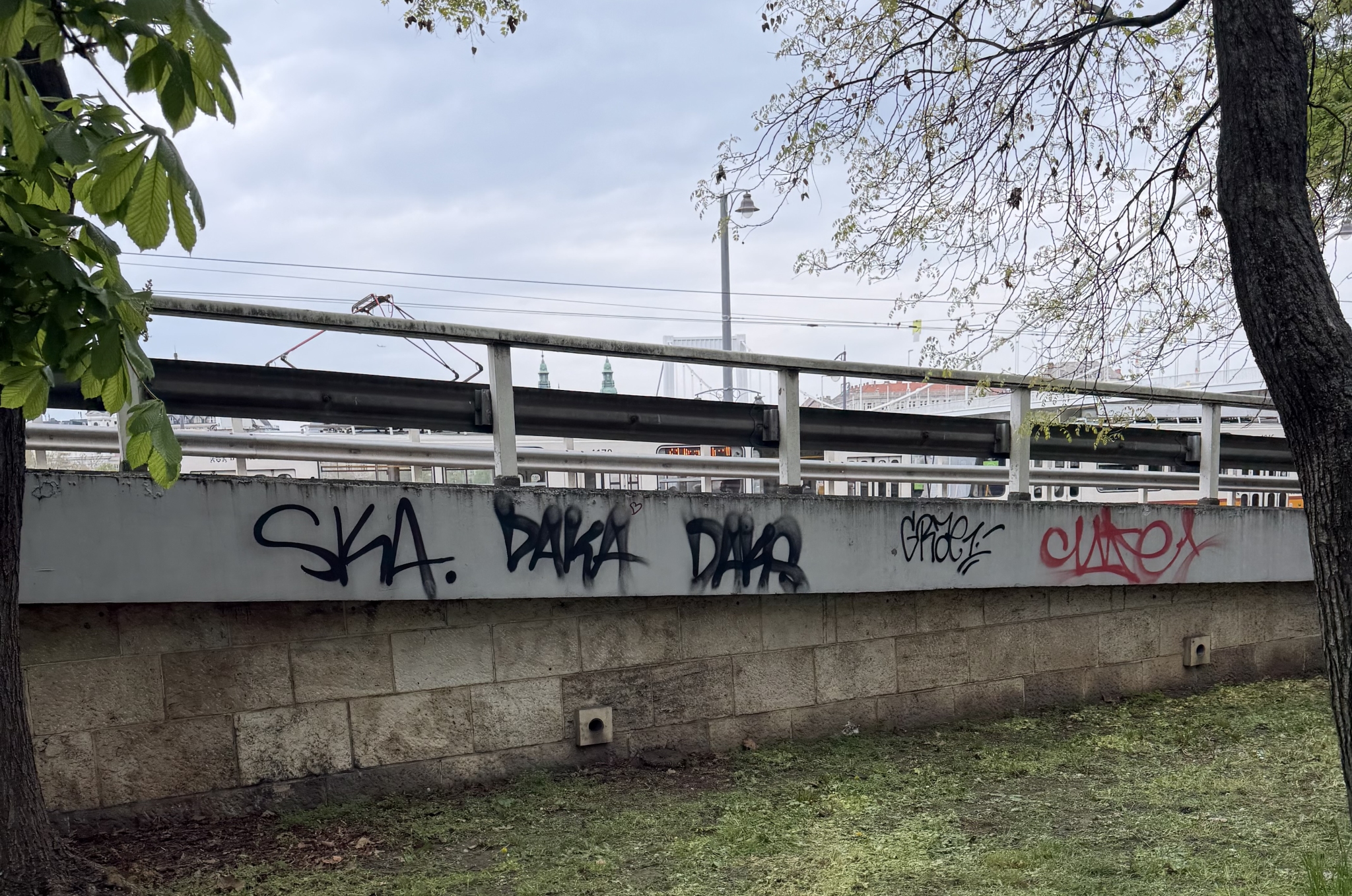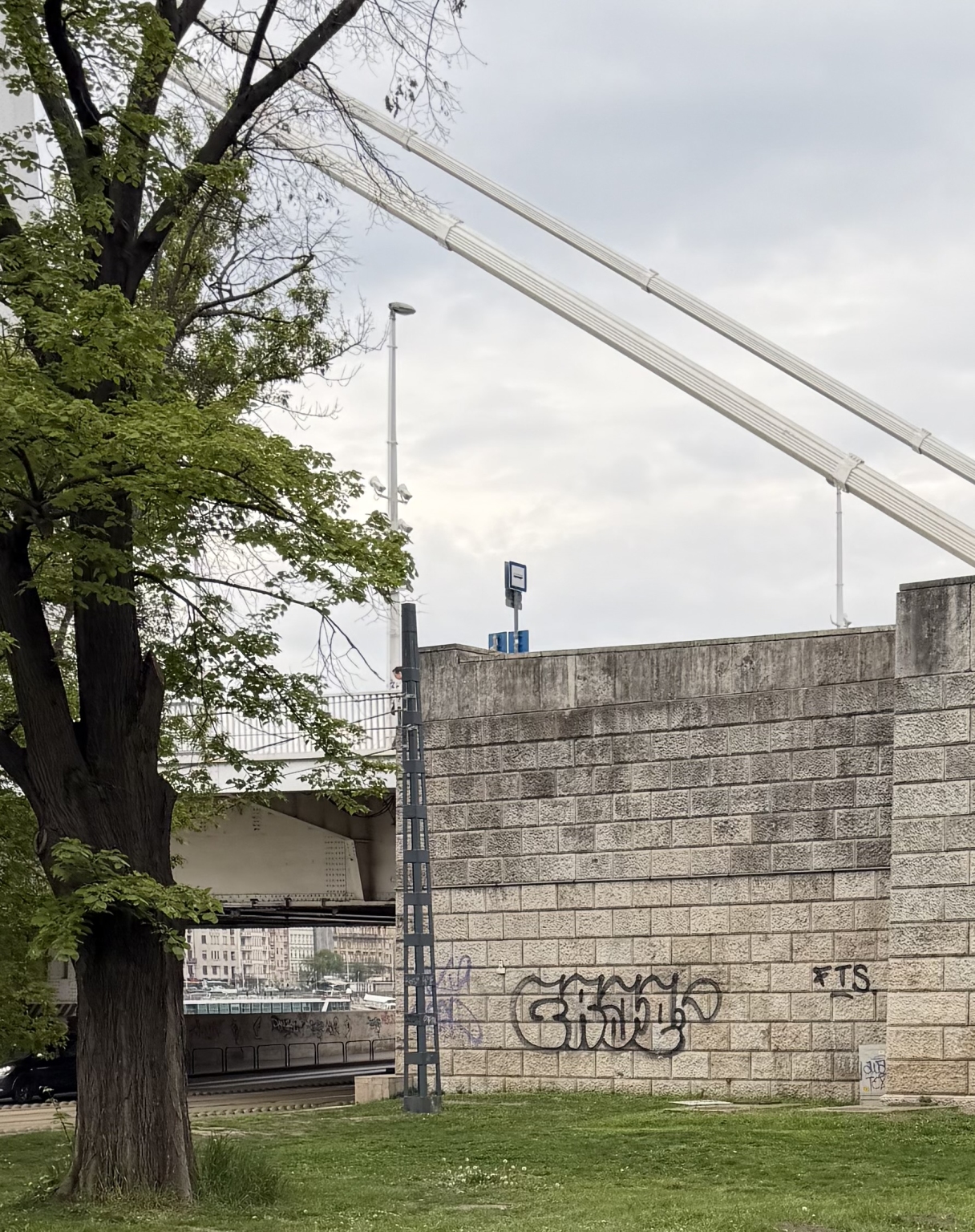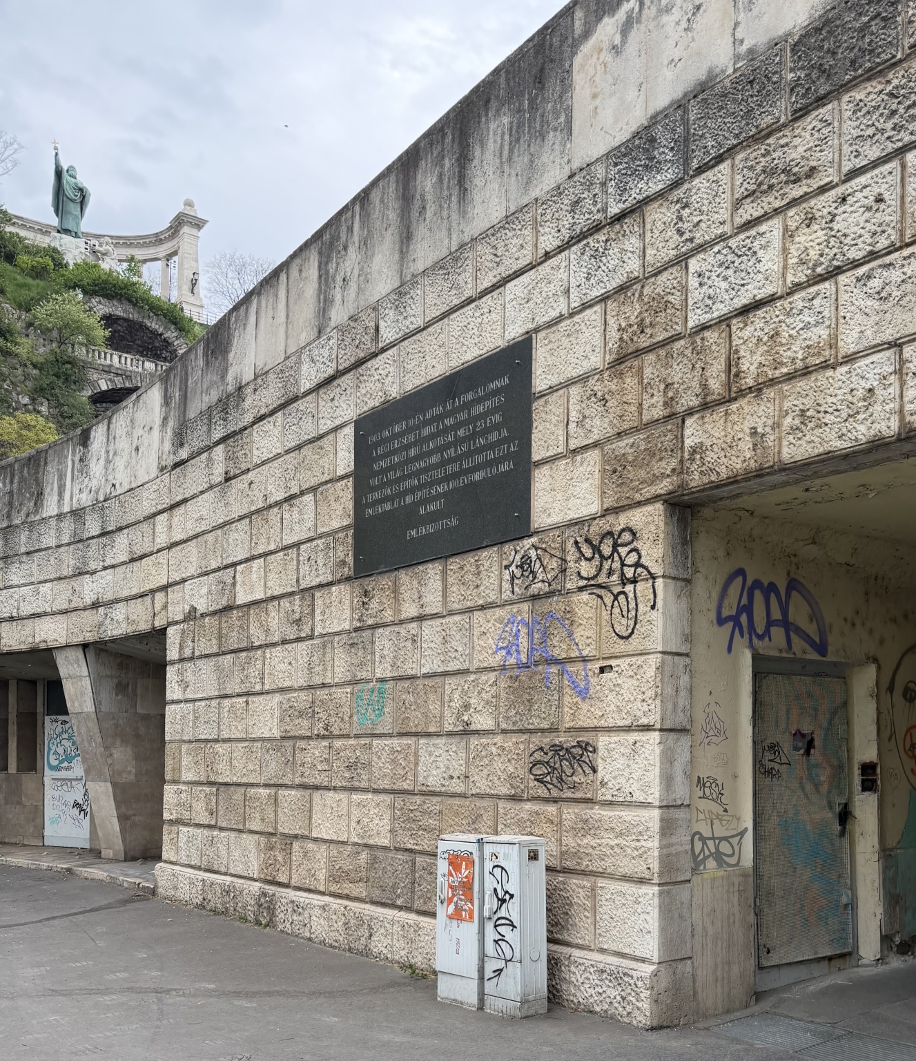 Az Erzsébet híd budai hídfőjénél a híd alja össze van firkálva.
