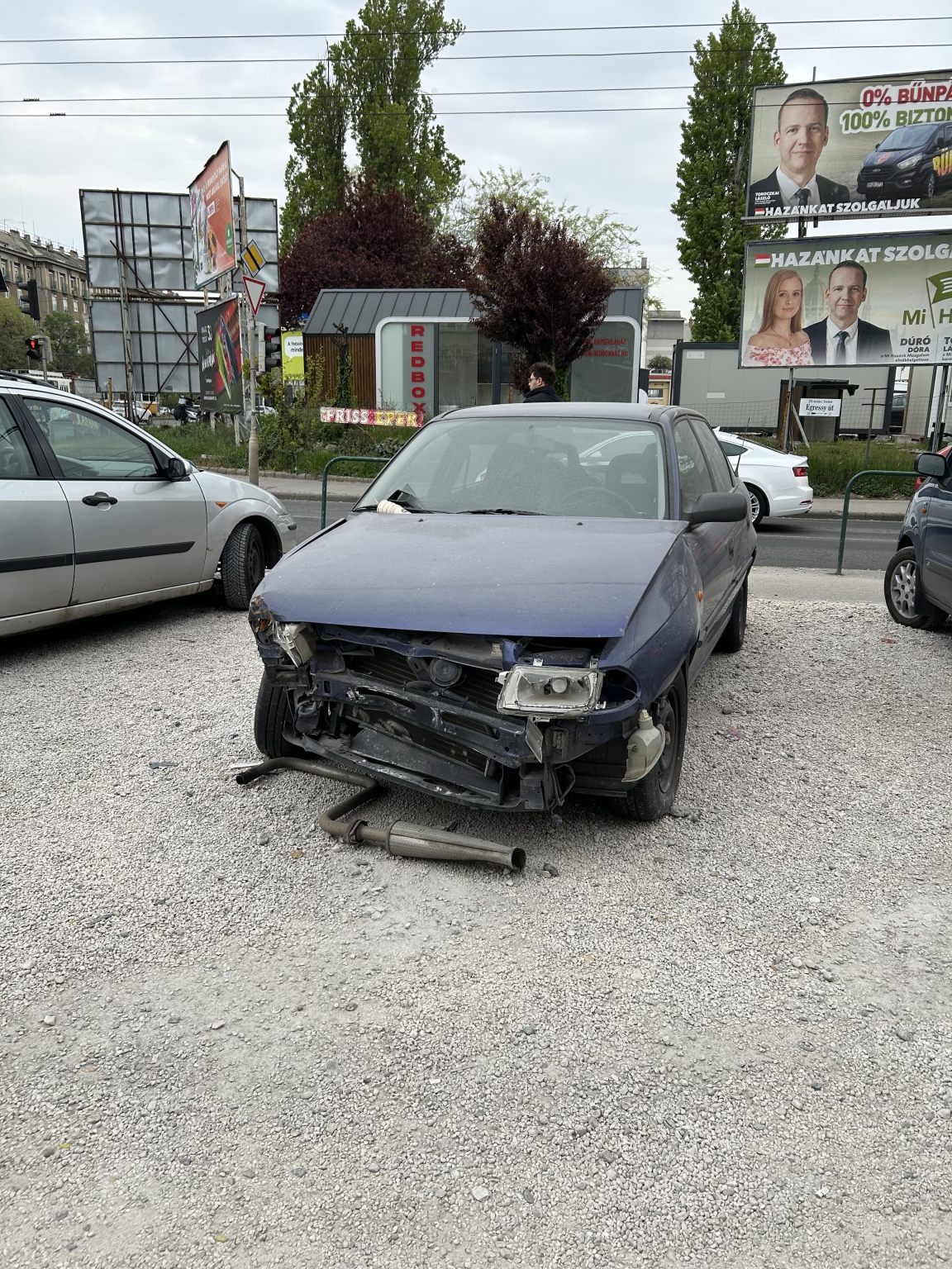 Roncsautó az Egressy út/Hungária krt sarkon