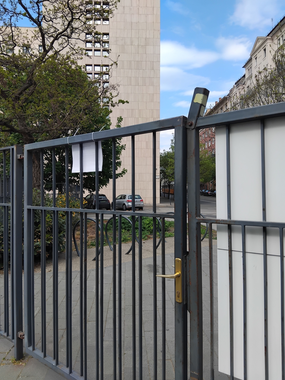 Az Olimpia Park Képviselői Irodaház felöli kapuja akad.