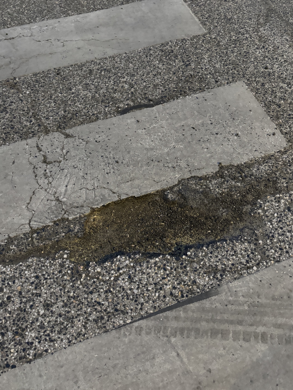 A zebra közepén egy hatalmas kátyú