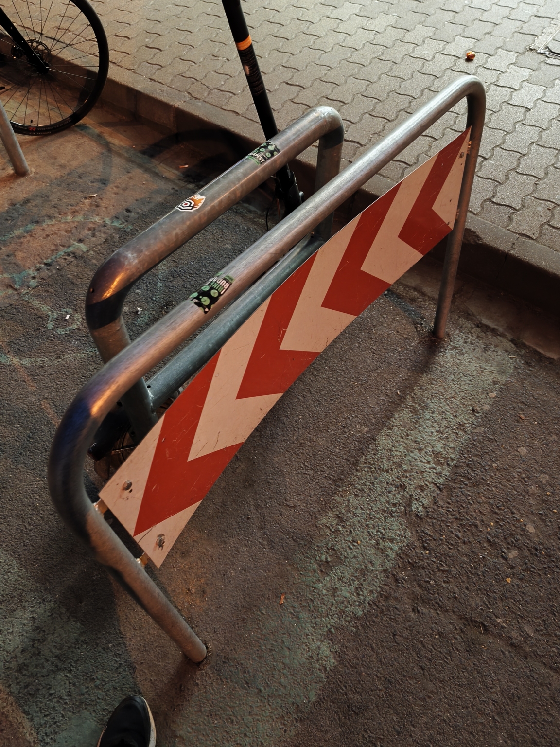 A bolt előtt 2 db kerékpártámasz van, ami 4 kerékpárnak nyújtana helyet. A rosszul helyreállított terelő annyira rajta van a támaszon, hogy a támasz jobb oldalára így kerékpár nem helyezhető. Vagy rakjanak ki még egy támaszt, ami elfér a mostani kettő közé, vagy igazítsák megfelelően ki a megdőlt terelőt. Köszönjük!