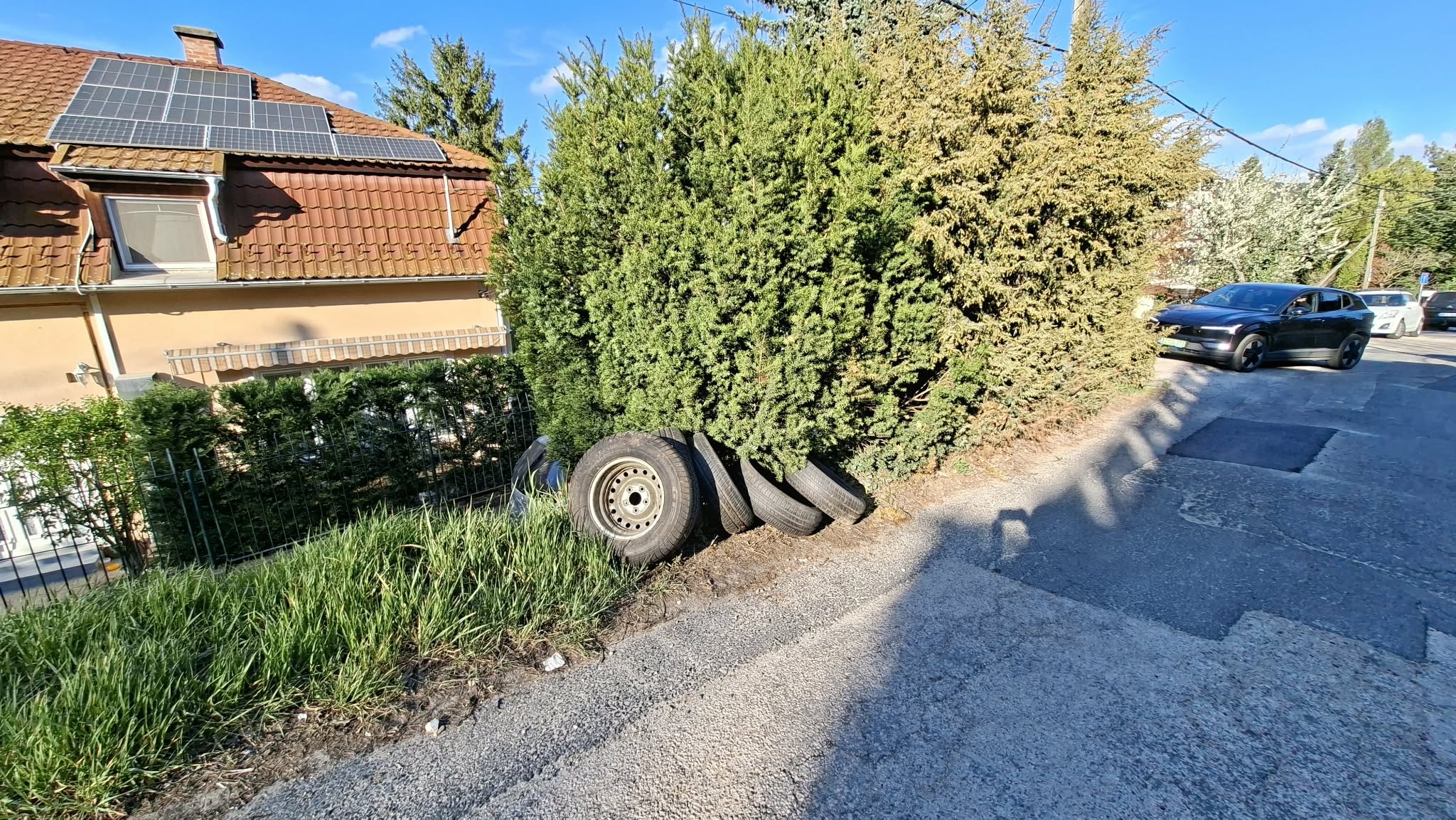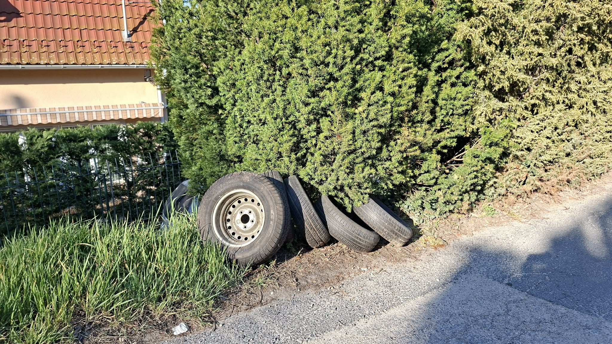 5 db autógumit lerektak az utcában egy bokor tövébe.