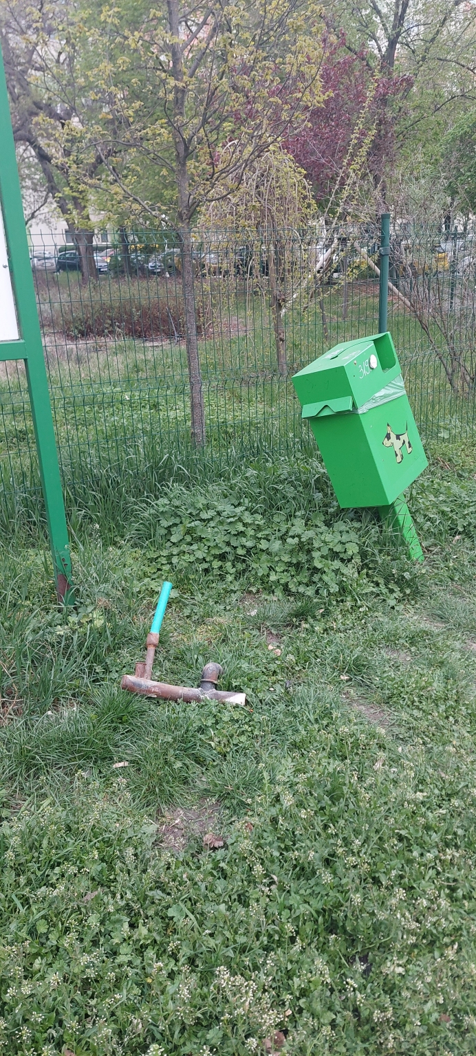 Valaki kidobta az építkezési bontasból származó csatornáját a kutyapiszokgyűjtésre szolgáló edény mellé.
