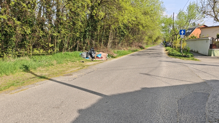 Álmos utcában az erdő szélén nagy mennyiségű szemetet helyeztek el. Kérem szíves közreműködést az eltakarításában.