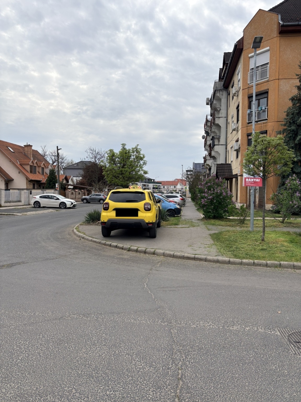 Ez az autó folyamatosan a járdán parkol a kereszteződésben. Akadályozza a gyalogos, biciklis, és babakocsis forgalmat, és nem mellesleg a kilátást is. Minden este, de napközben is itt parkol állandó jelleggel.