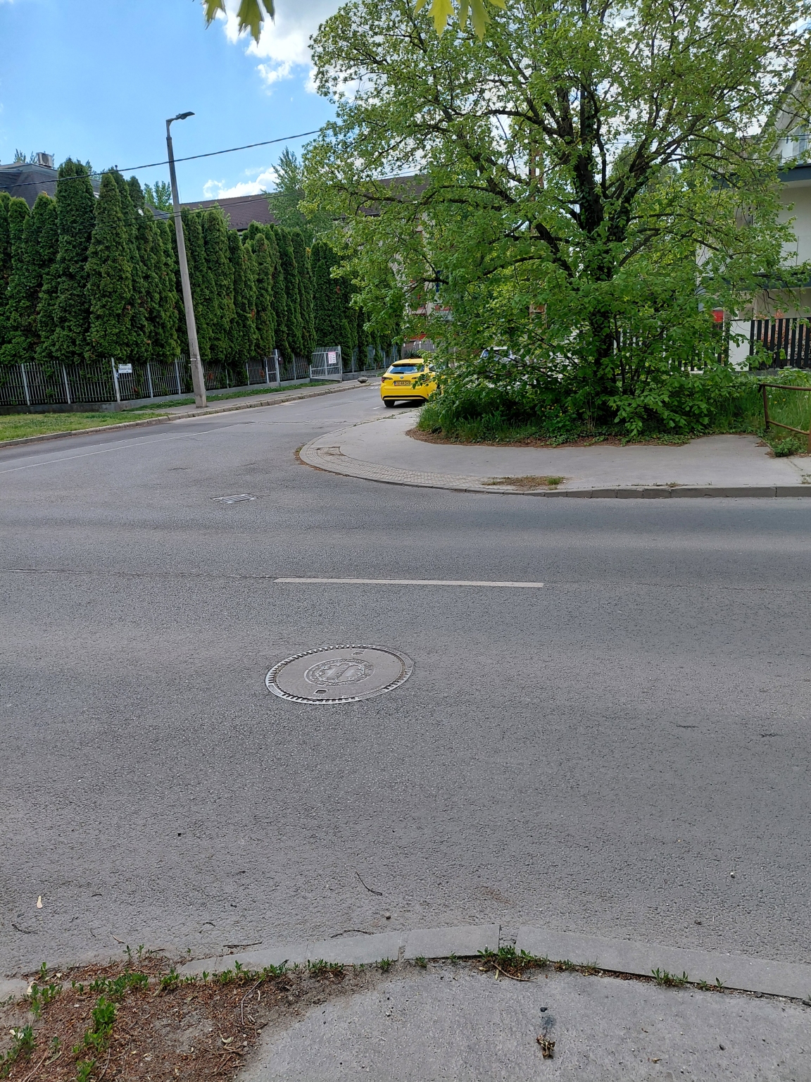 Óbudán, a Kisbojtár - Bojtár utca sarkán a kijelölt gyalogátkelő helyén hiányzik a zebra felfestés.