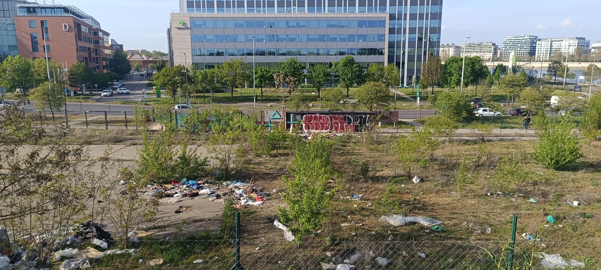 Forgalmas helyen egy nagyon elhanyagolt terület, ahol egyre több a szemét.
