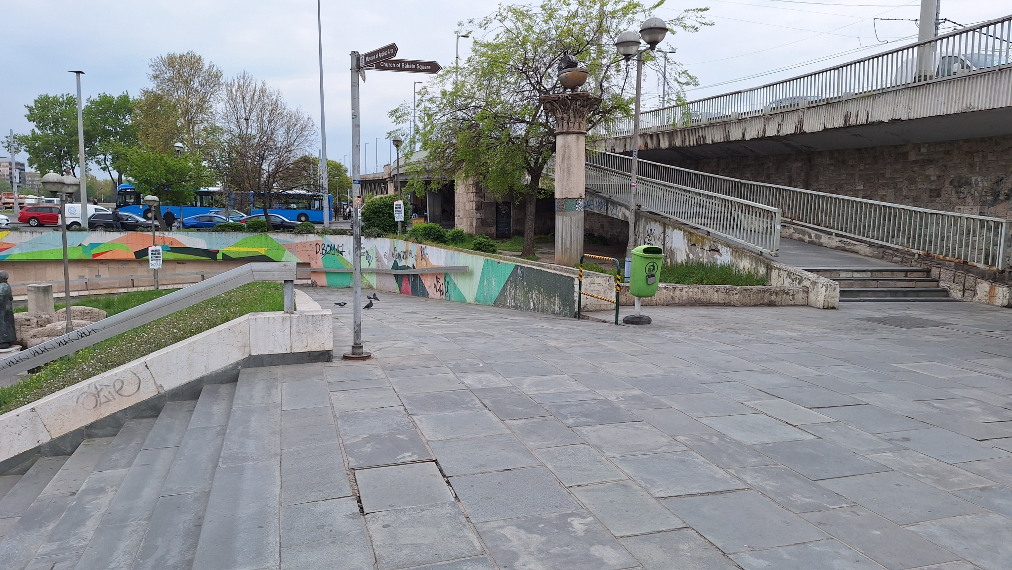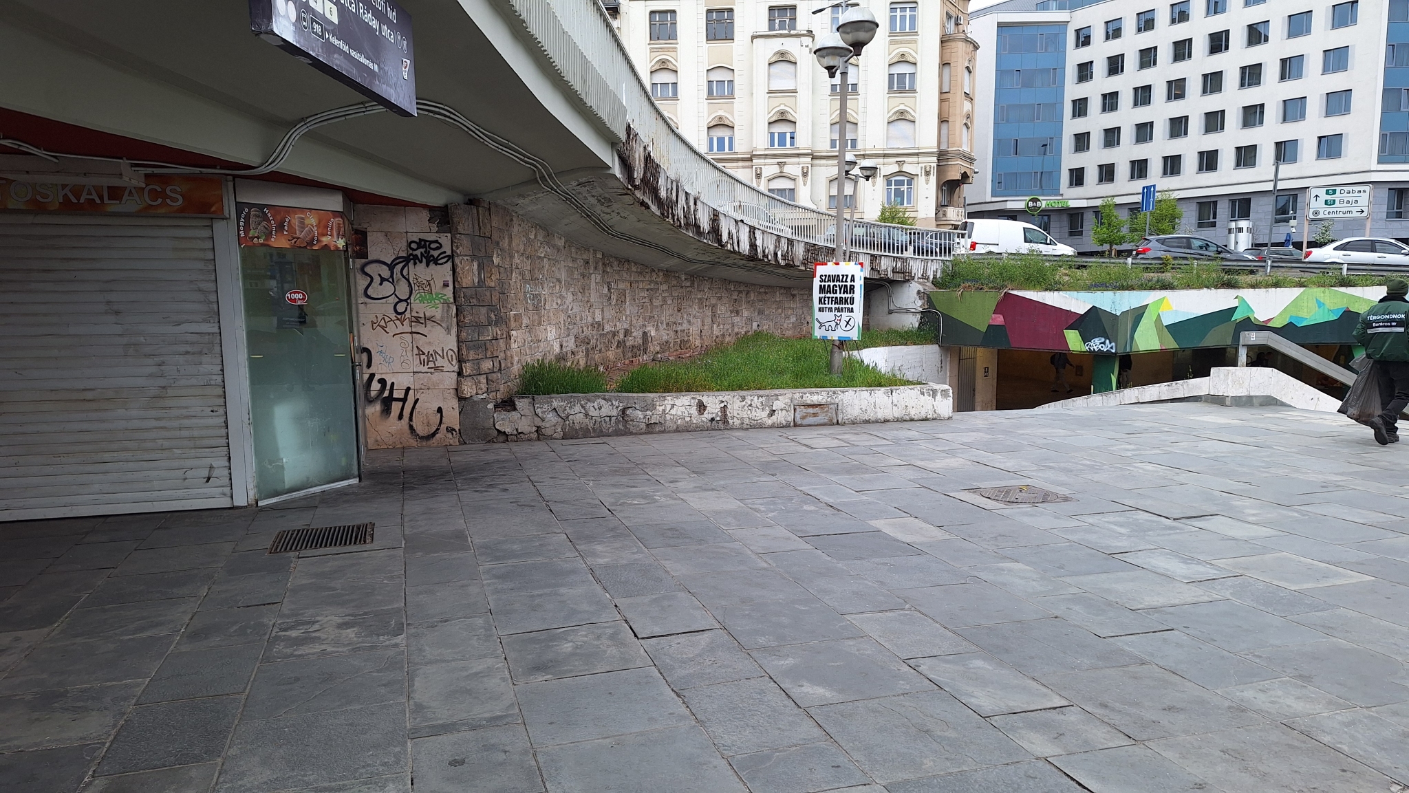 A Boráros téri aluljáró E lépcsője előtti teresedésen több járólap mozog, billeg.