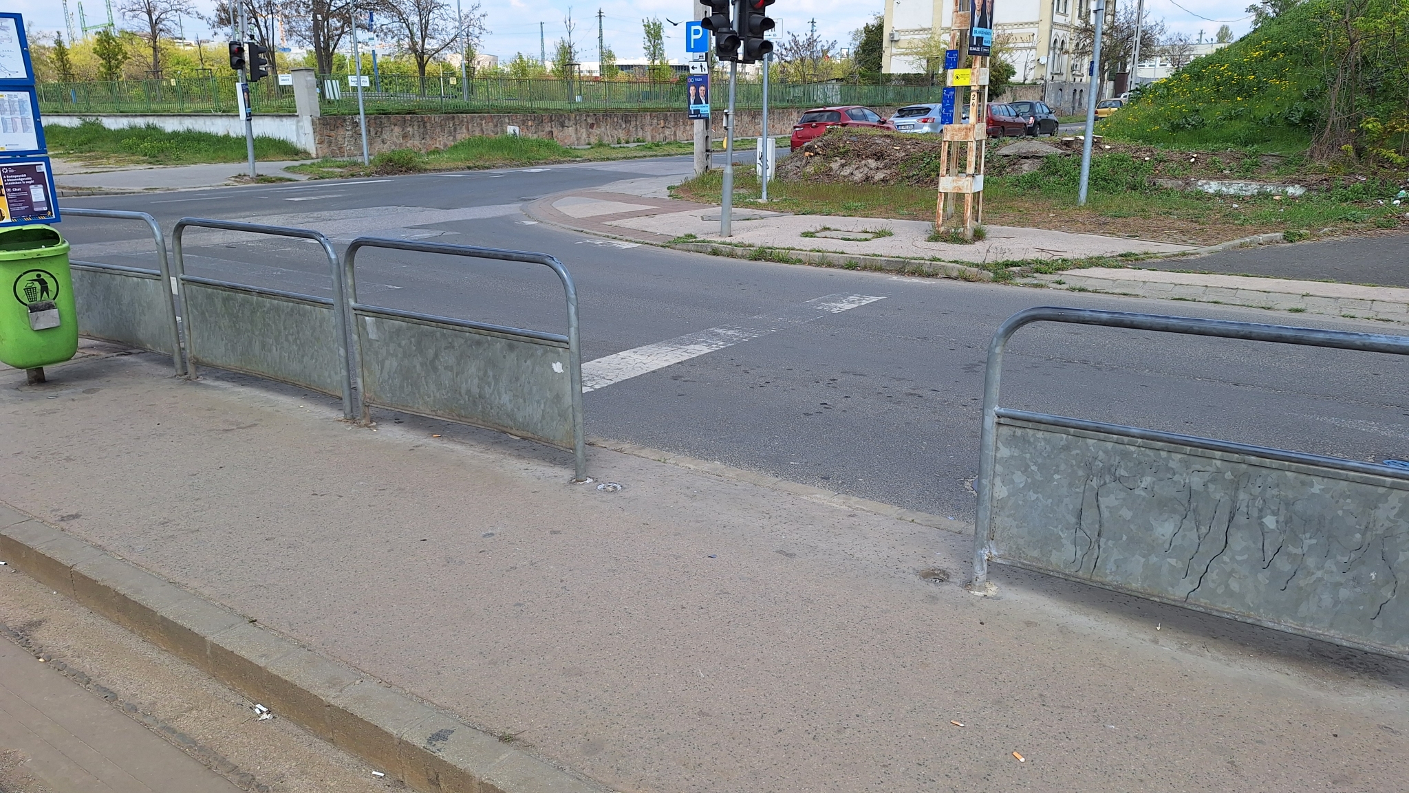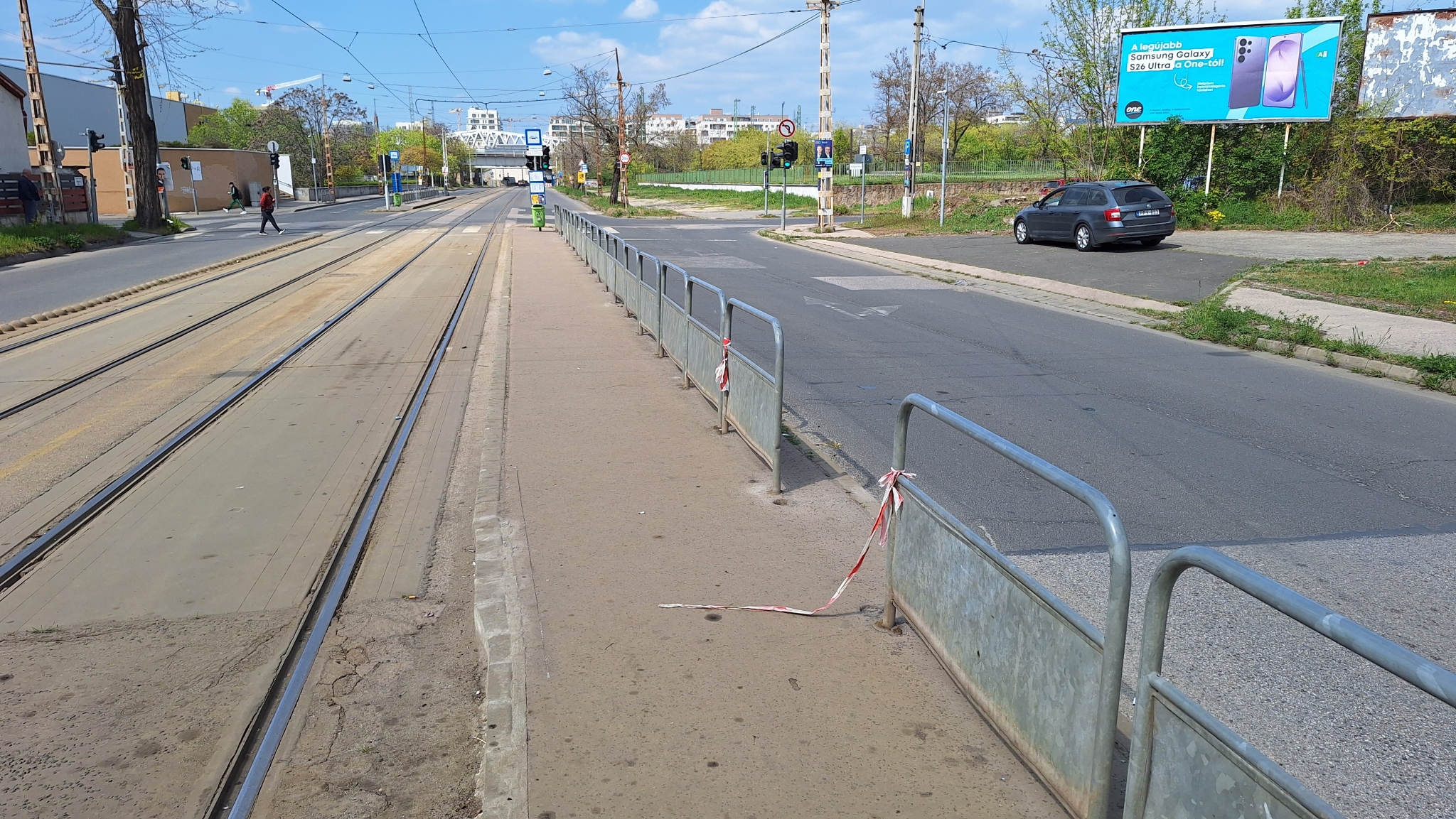 A 2b villamos Koppány utca megállójában (a Jászai felé) több korlátelem hiányzik.