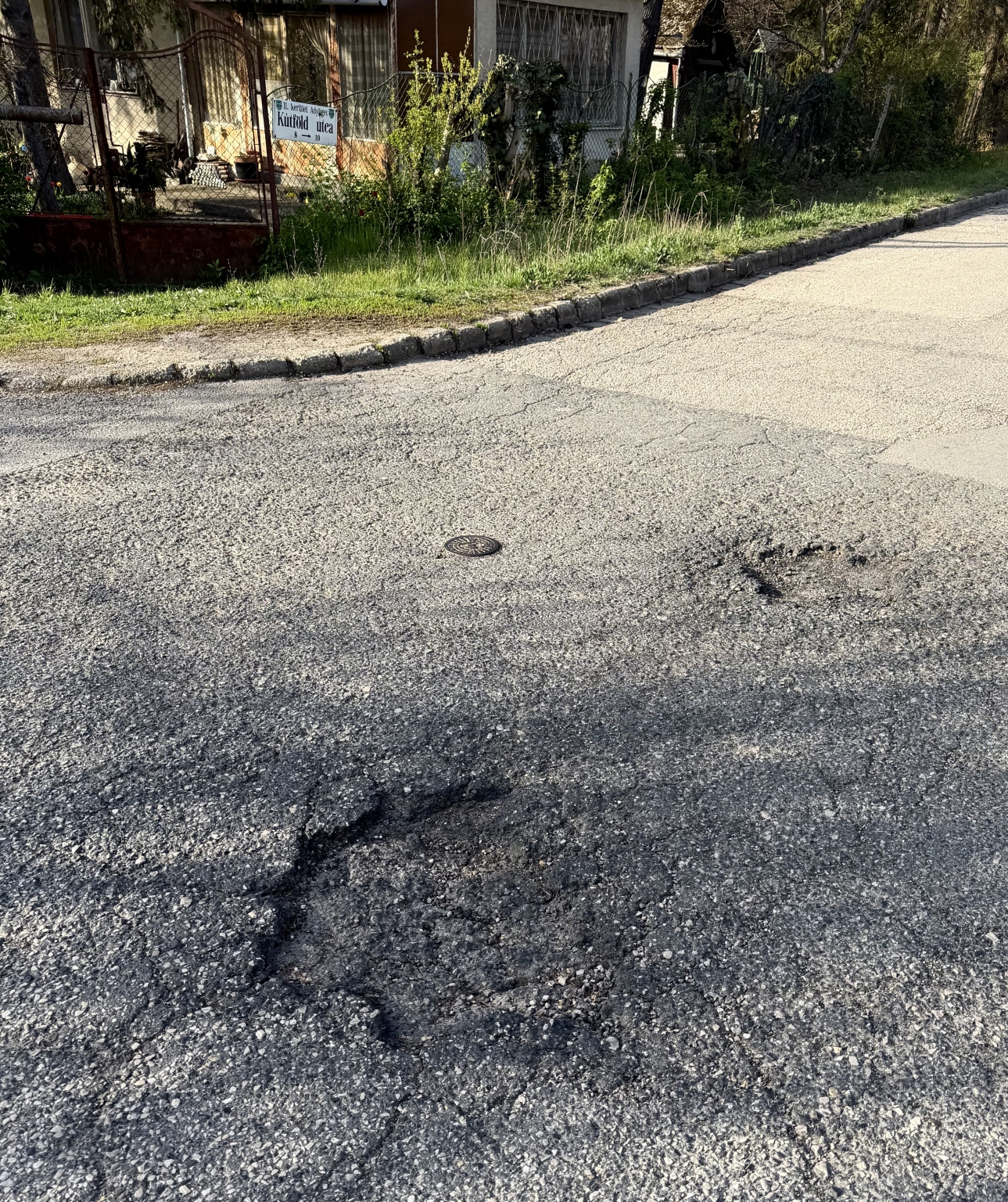 Több kátyú a 2 ker. Kútföldi utcában