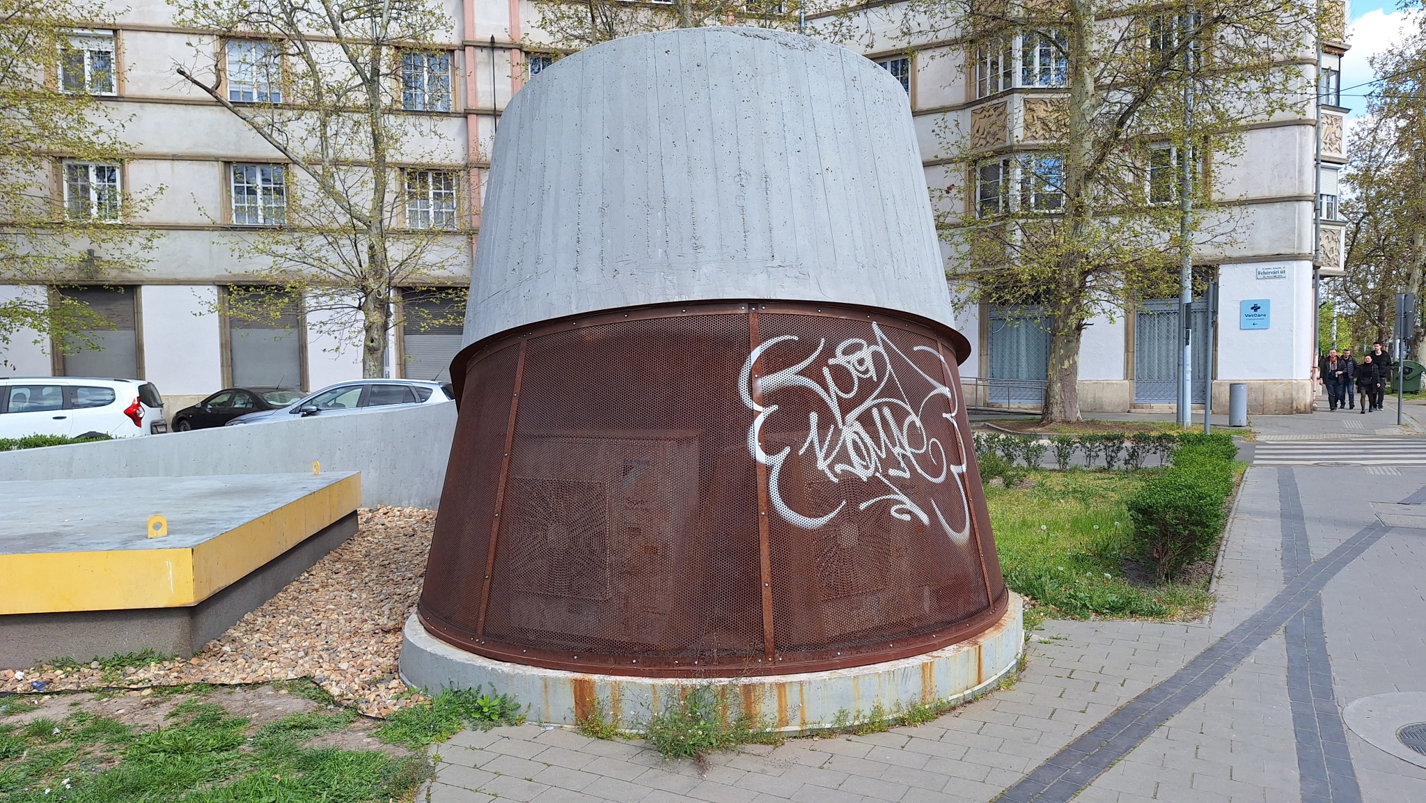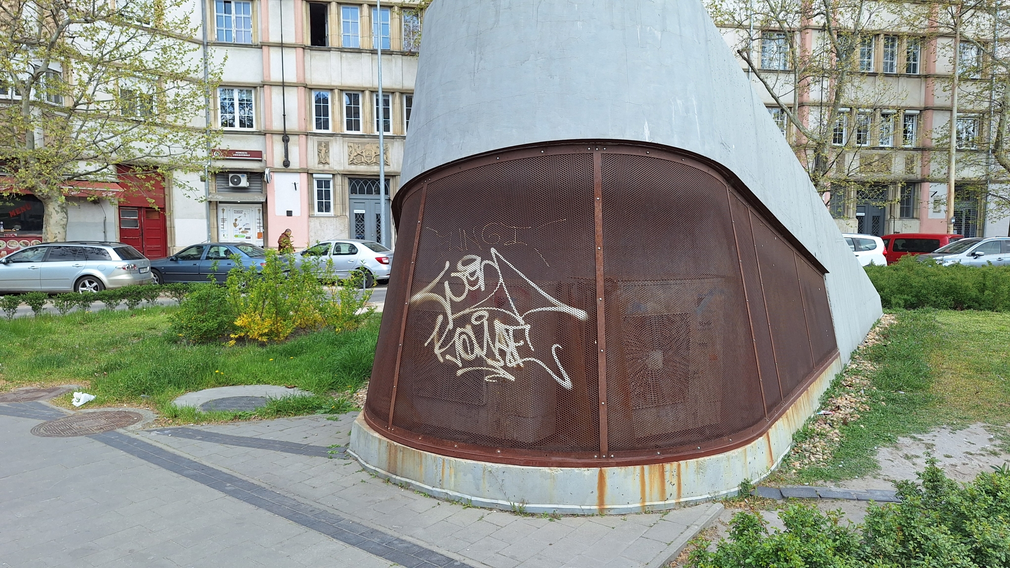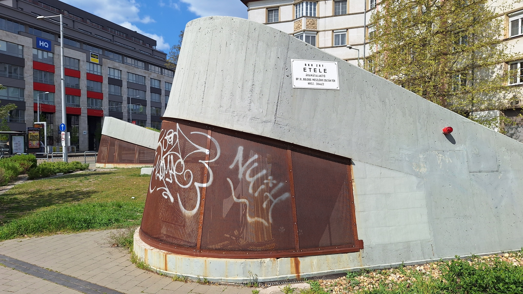 A Boldog Meszlényi Zoltán téri áramátalakító szellőzői össze vannak firkálva.