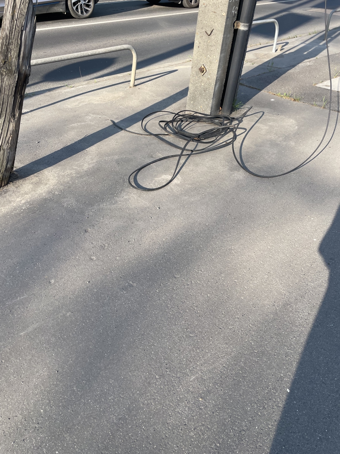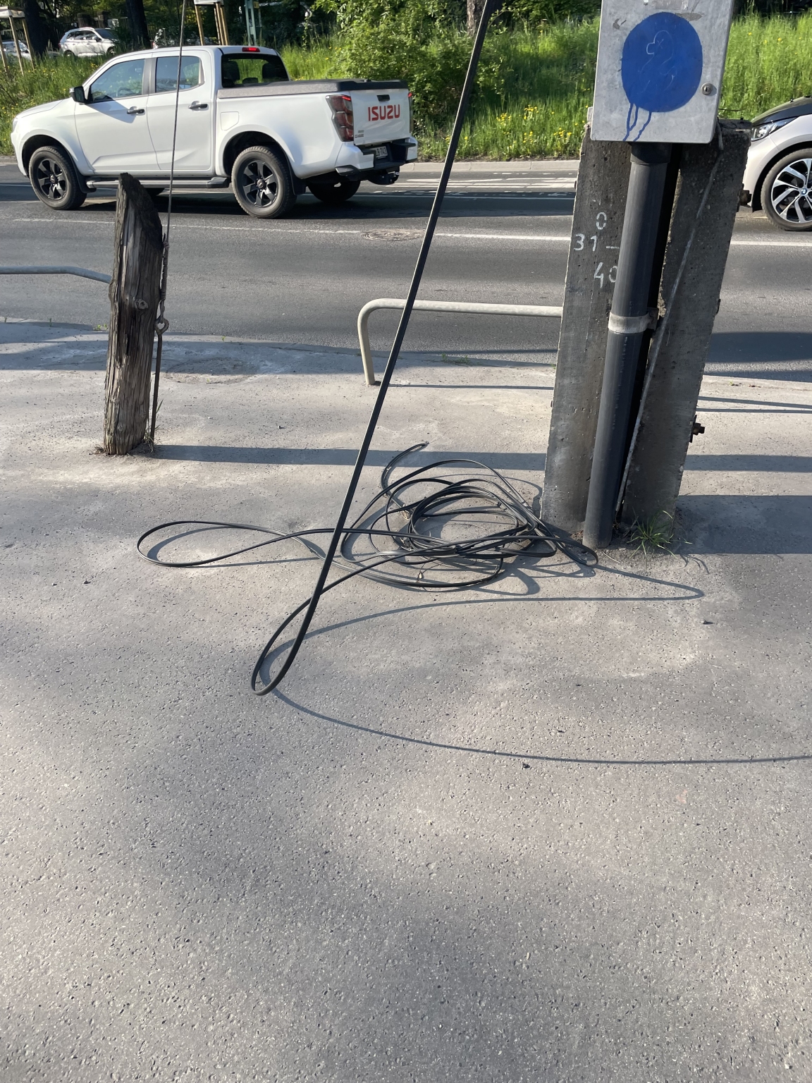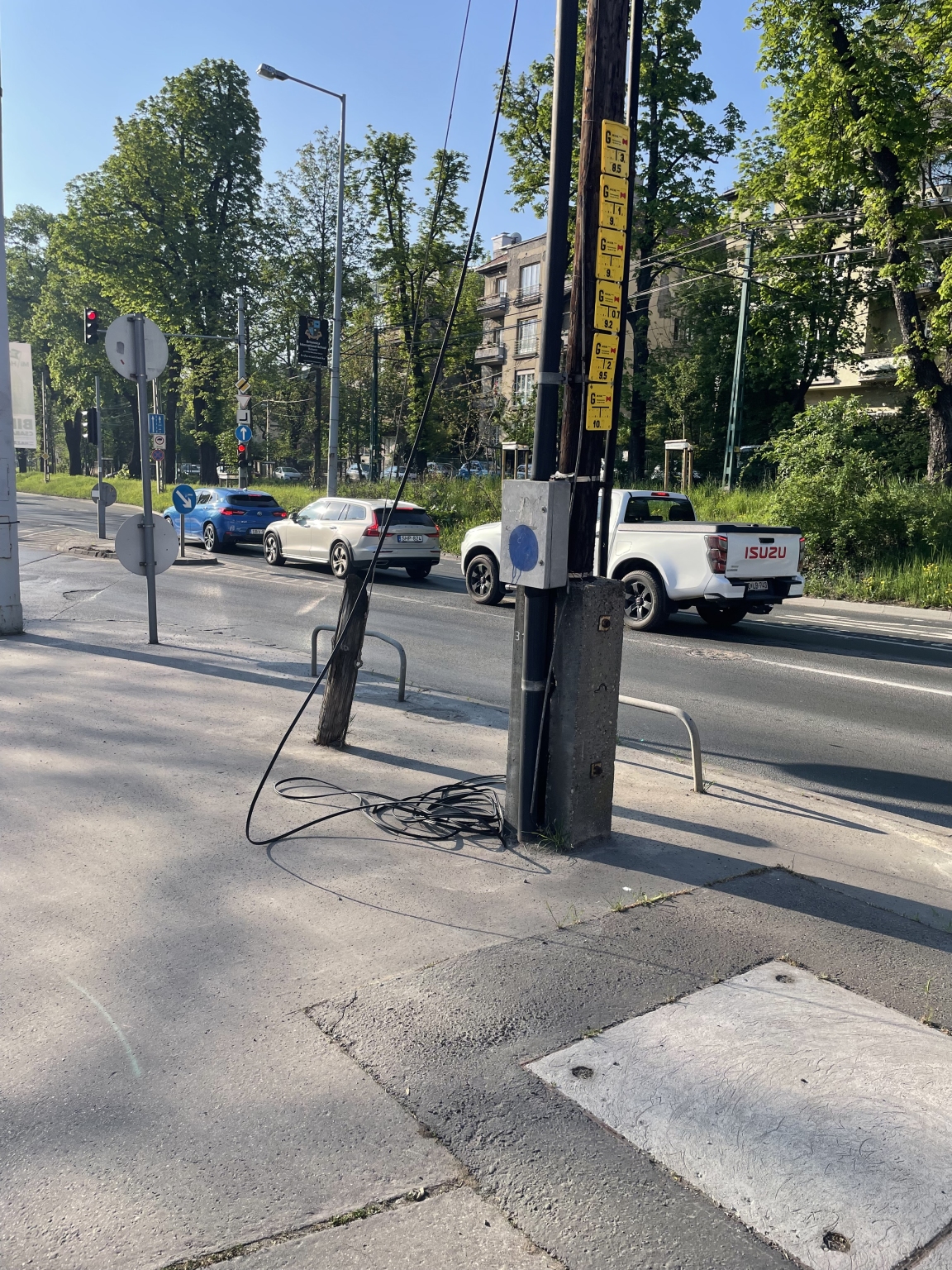 Jelzett helyen (Hűvösvölgyi út - Budakeszi út torkolat) nagyobb mennyiségű kábel tekeredik az oszlop körül a talajig.