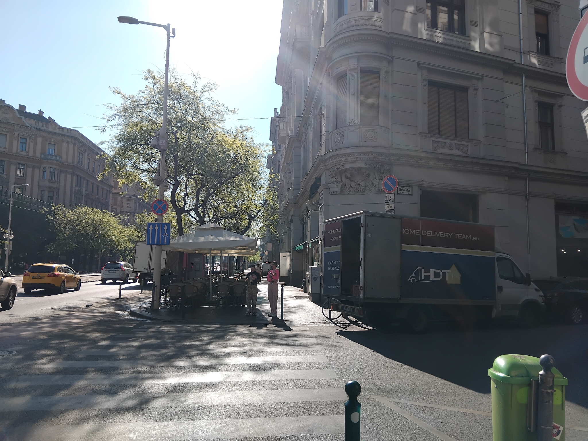 Az állandó itt rakodás miatt, amit nem szankcionálnak, nem lehet látni a lámpát sosem. Aki nem ismerős itt, simán kilép, mert nem tudja, hogy nem sima zebra van.