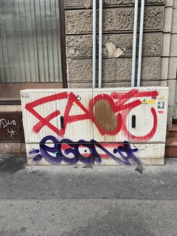 1054 Budapest, Bajcsy-Zsilinszky út 62. szám előtt van egy villamos szekrény (valószínüleg a trolibusz áramellátáshoz kell) és sajnos gusztustalanul tele van firkálva, grafitizve. Nagyon rontja a városképet.