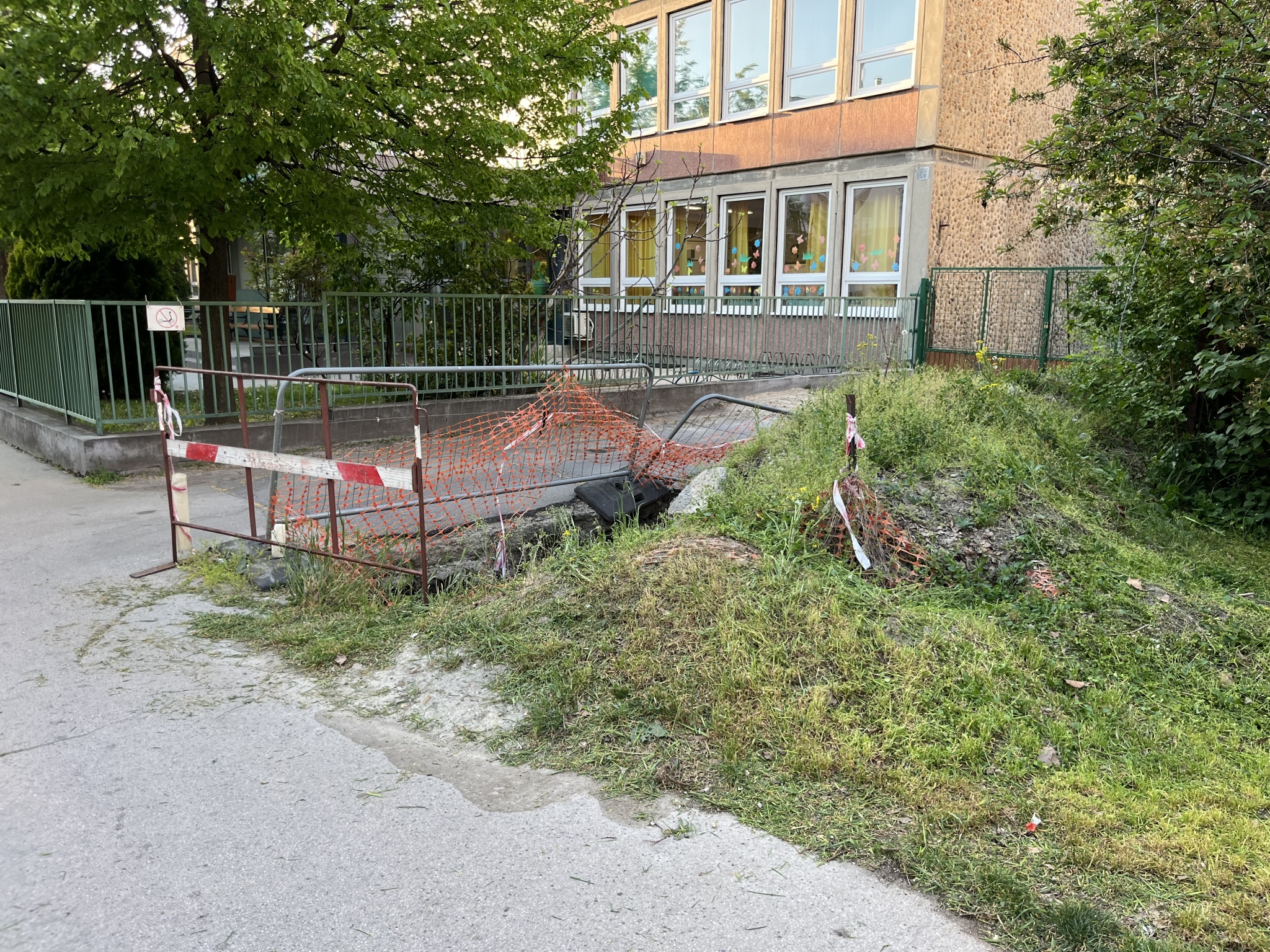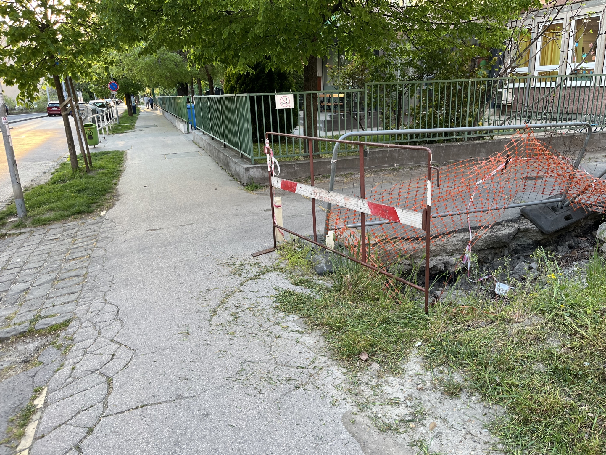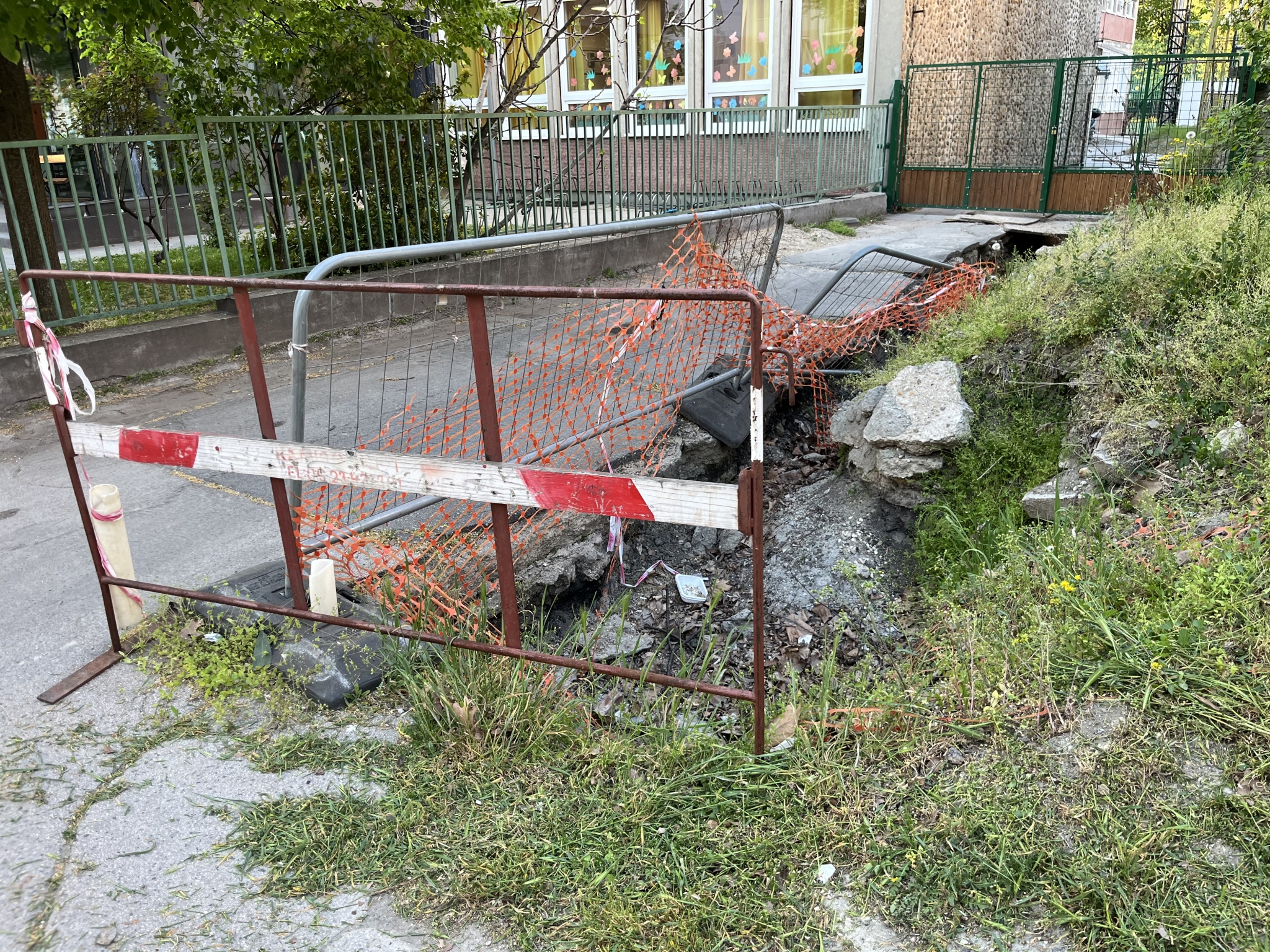 A XI. ker. Bikszádi utcában a Grosics Iskola gazdasági bejáratánál évek óta van egy mély gödör. Egy “ákombákom” kordon van ugyan kitéve, de a gödörbe már estek bele. Az Iskola a kivitelezővel nem boldogul, nem hajlandók visszatemetni. Nem csak veszélyes, nagyon igénytelen is a helyzet.