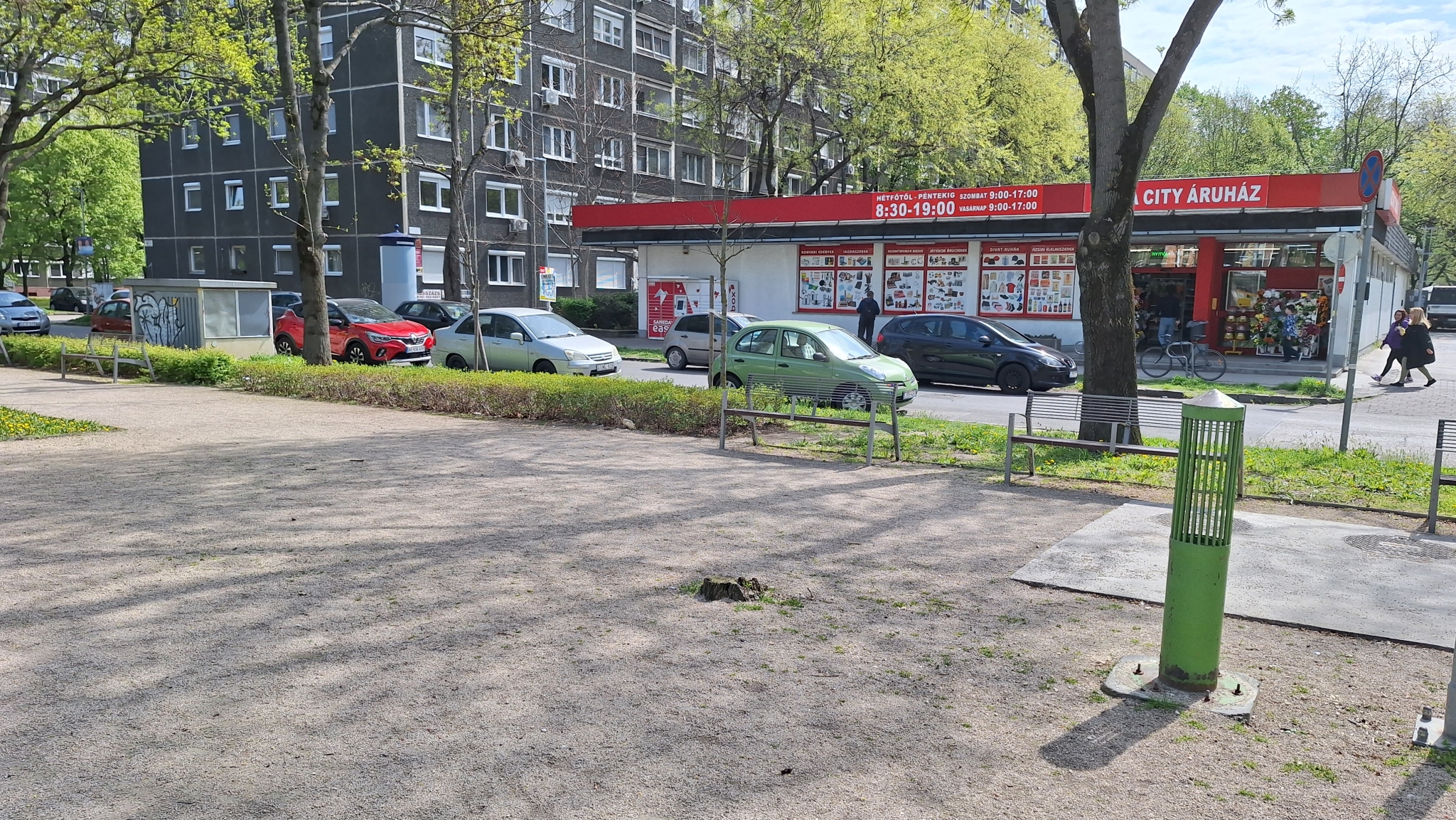Az Etele parkban a régi Spar előtt áll egy kiszáradt fa, illetve a salakos gyalogúton van egy régi fatuskó is, ami eléggé botlásveszélyes.