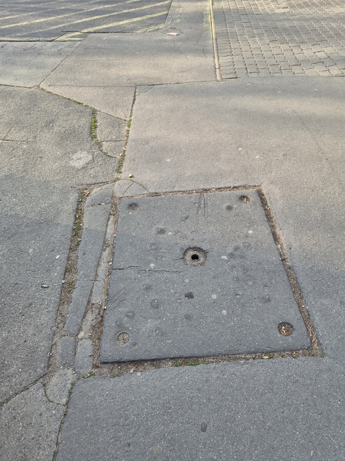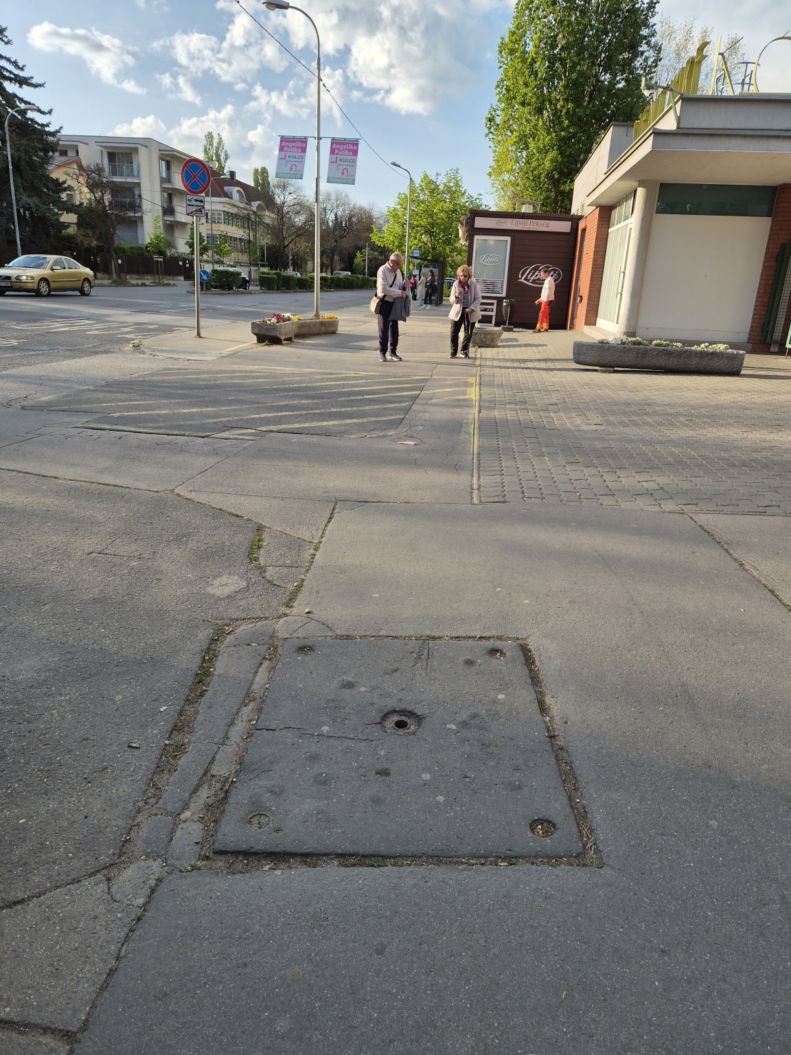 Sérült fedlap a Kórház bejáratánál