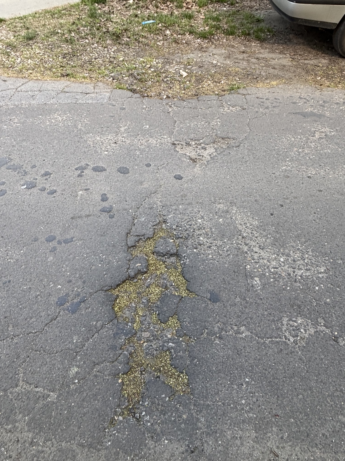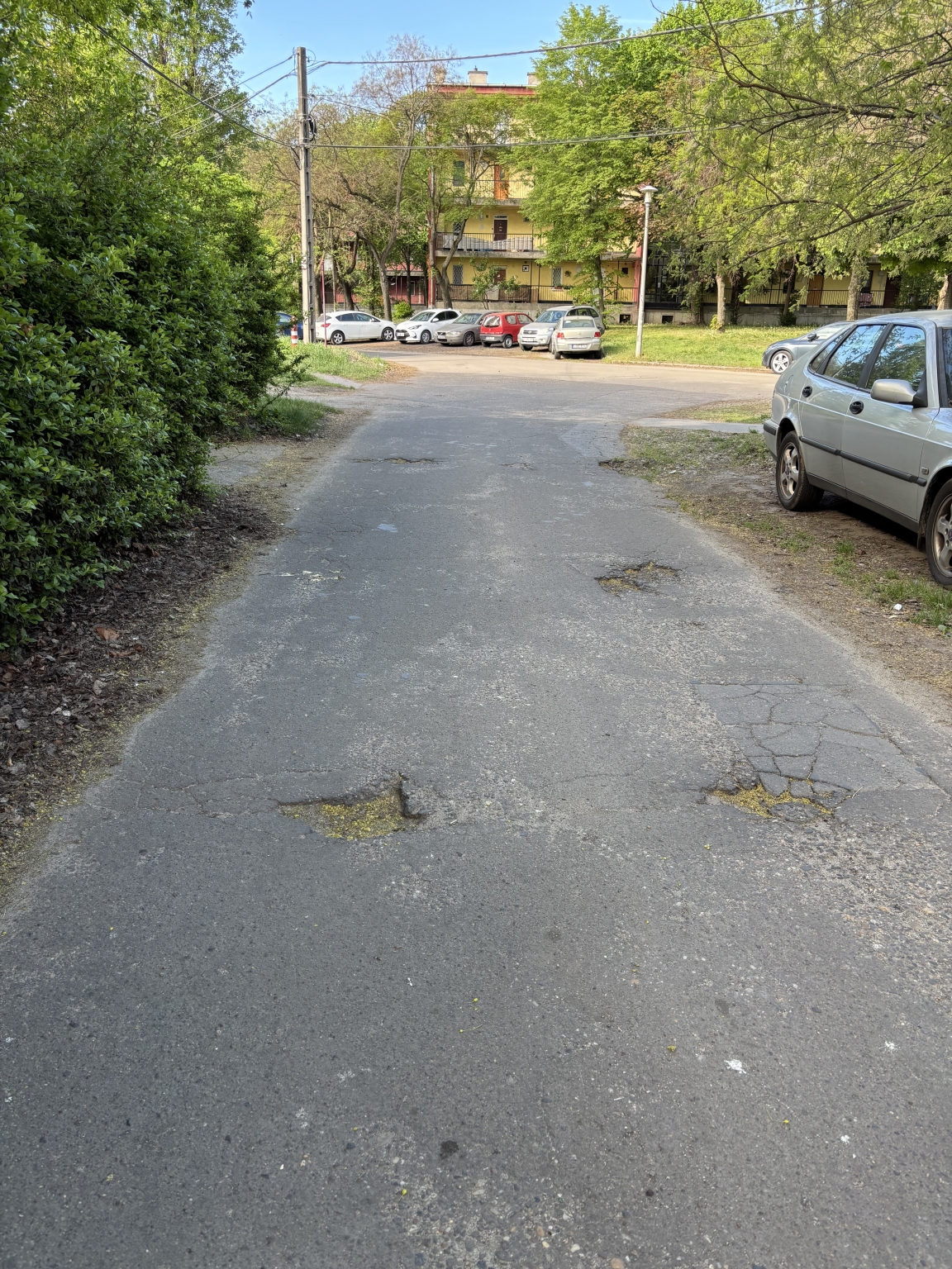 A XIX. kerület Dobó Katica utca 112. szám előtt találhatóak a képen látható kátyúk. Kérem az illetékes javítsa ki.