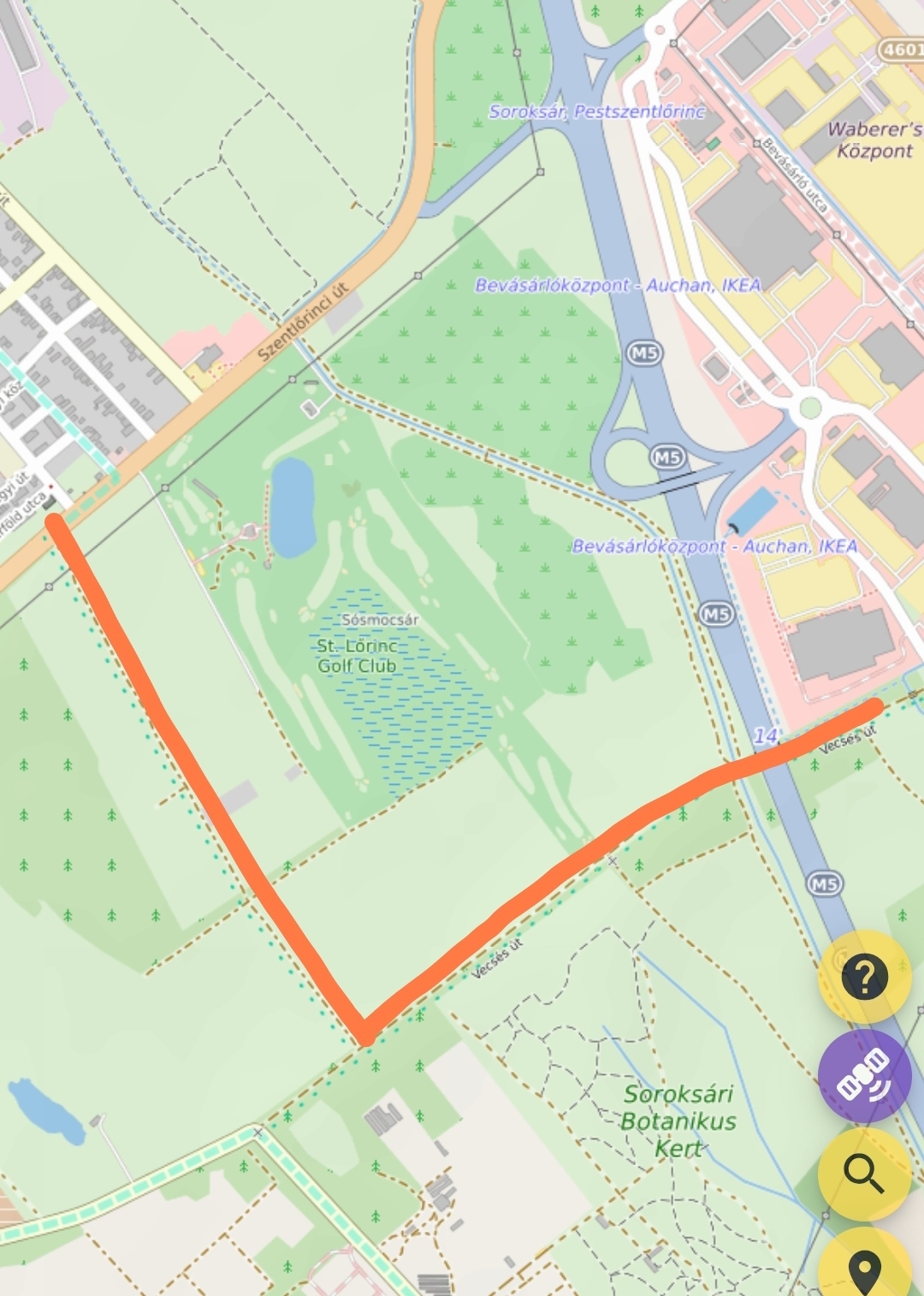 A Szt. Lőrinc Golf Klub körüli földutakon, az M5 autópya bevezetője mellett és alatt, nagy mennyiségű illegálisan lerakott hulladék található. A hulladék mennyiségét 50-100 m3-re becsülöm. A kupacokat jellemzően gumiabroncsok, háztartási készülékek, építési törmelék alkotják. Az érintett utakat a tényképek között csatolt térképes kivágaton jelöltem.