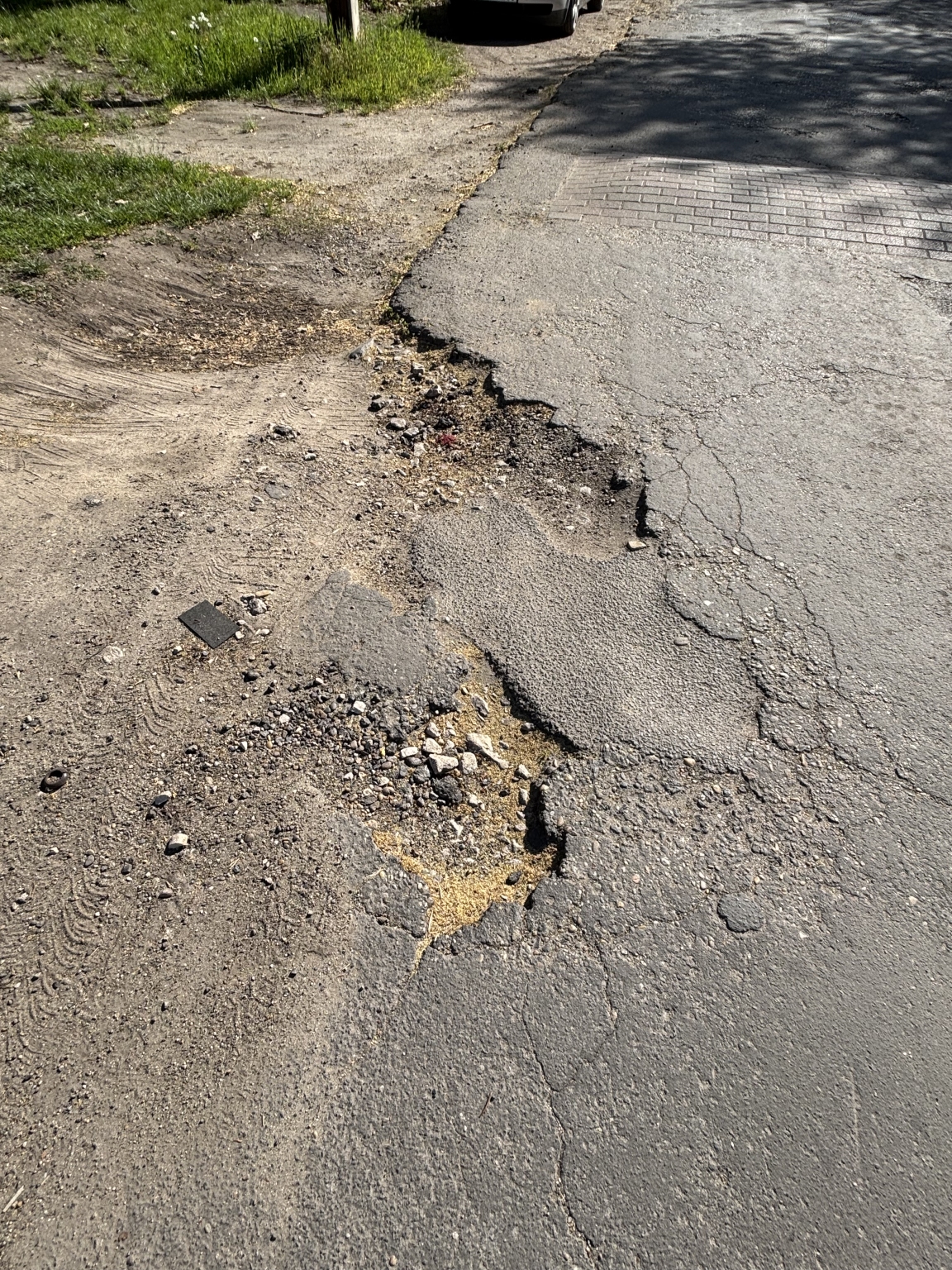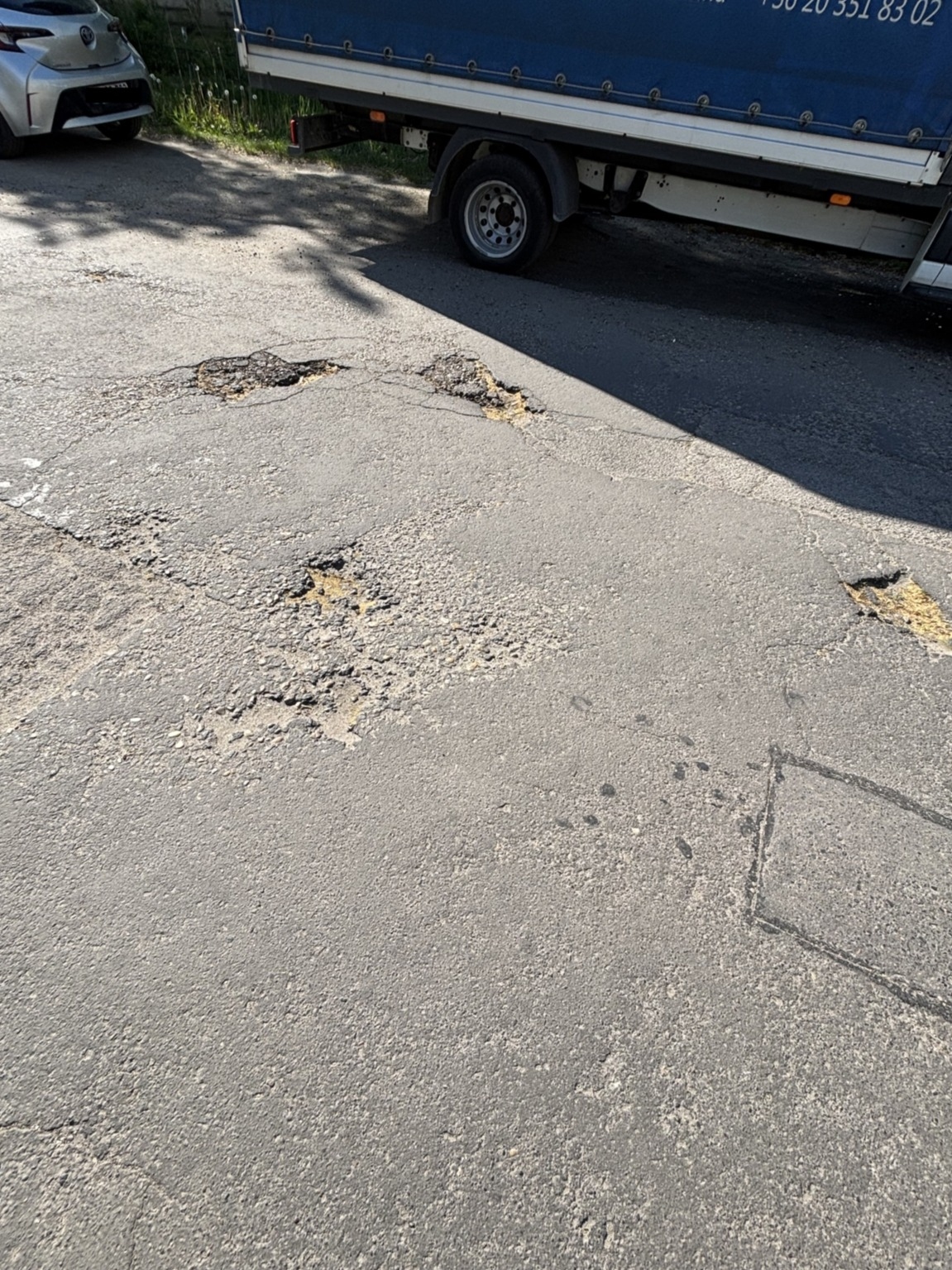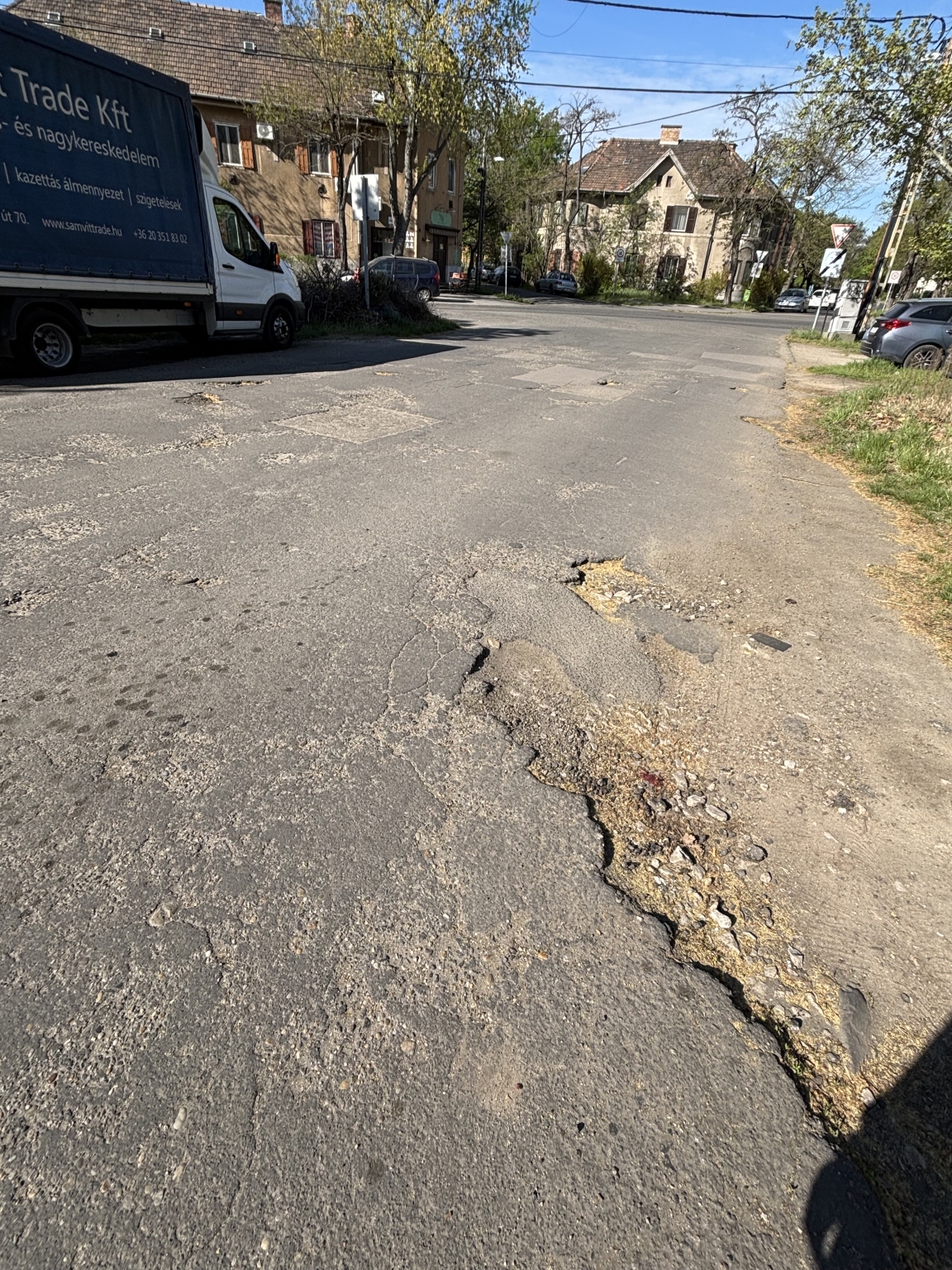 A XIX. kerület Nagy Lajos krt. és Zalaegerszeg utca sarkán, de a Nagy Lajos körúton rengeteg kátyú van az úton.