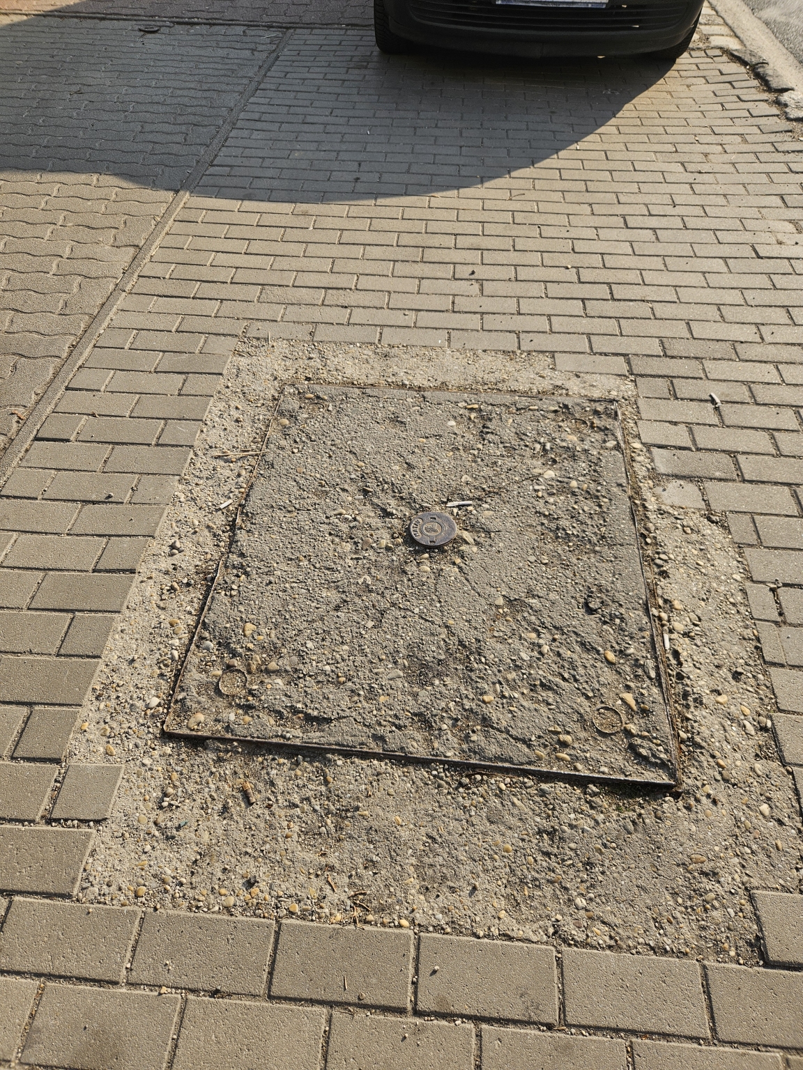 A Reitter Ferenc utca 111-nél, a Futár utcai buszmegállónál lévő Matáv fedlap erősen töredezett és körülötte a keret is.