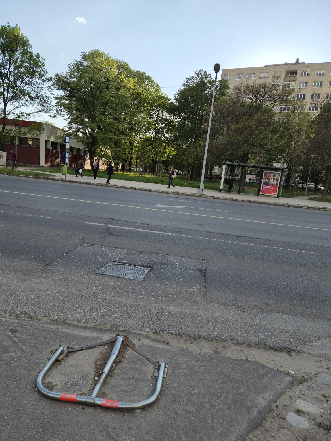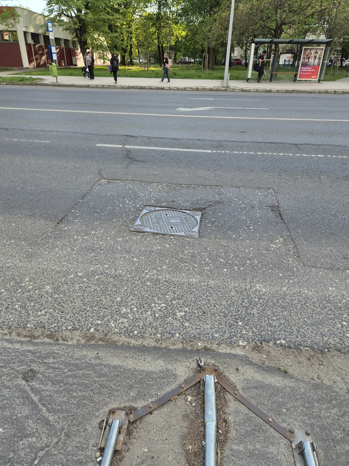 A Tétényi úton a Szent Imre Kórház vonalában egy csatorna fedlap megdőlt, besüllyedt az útba.