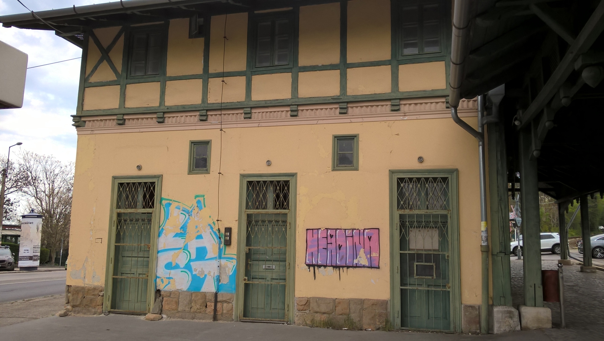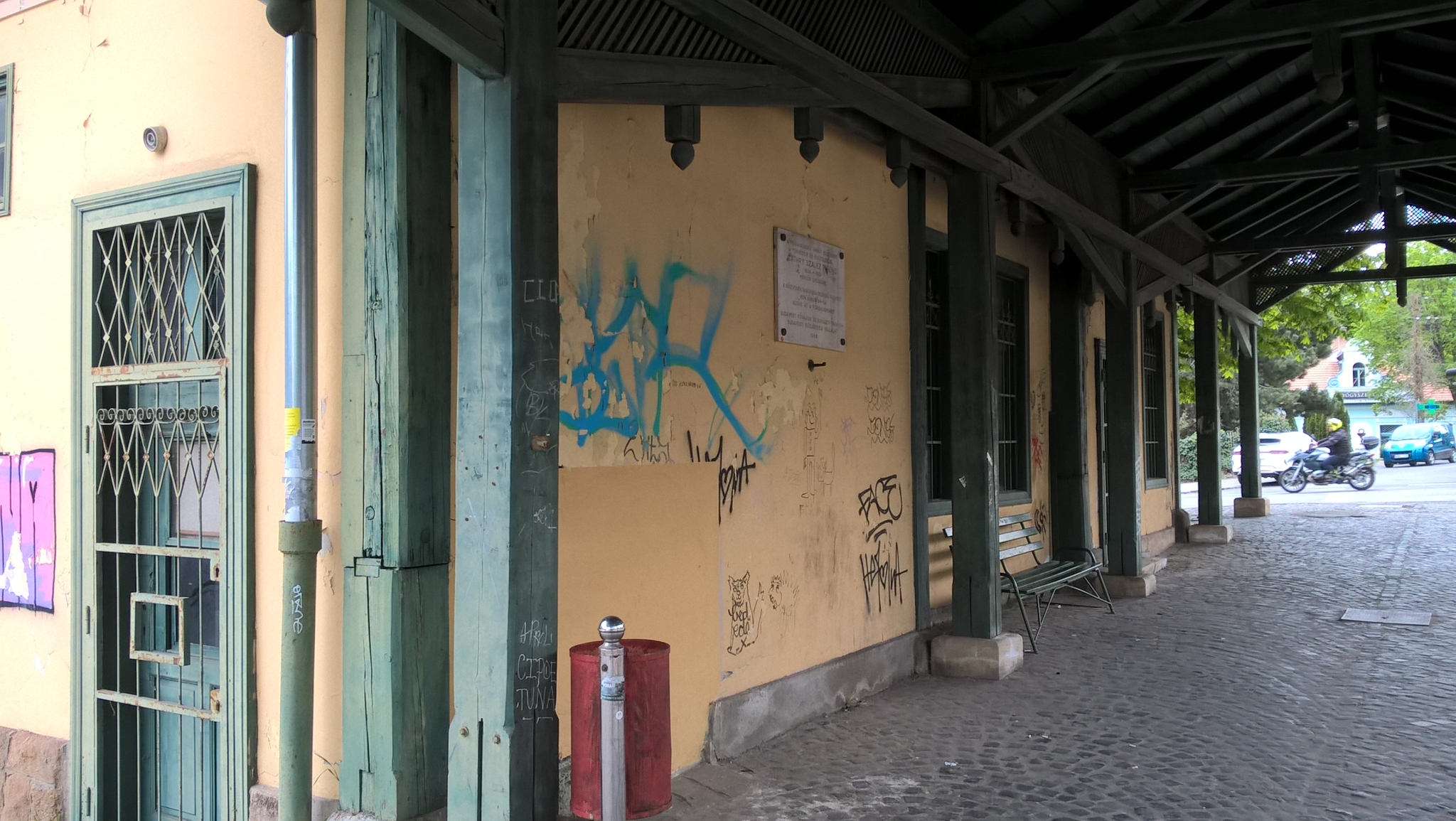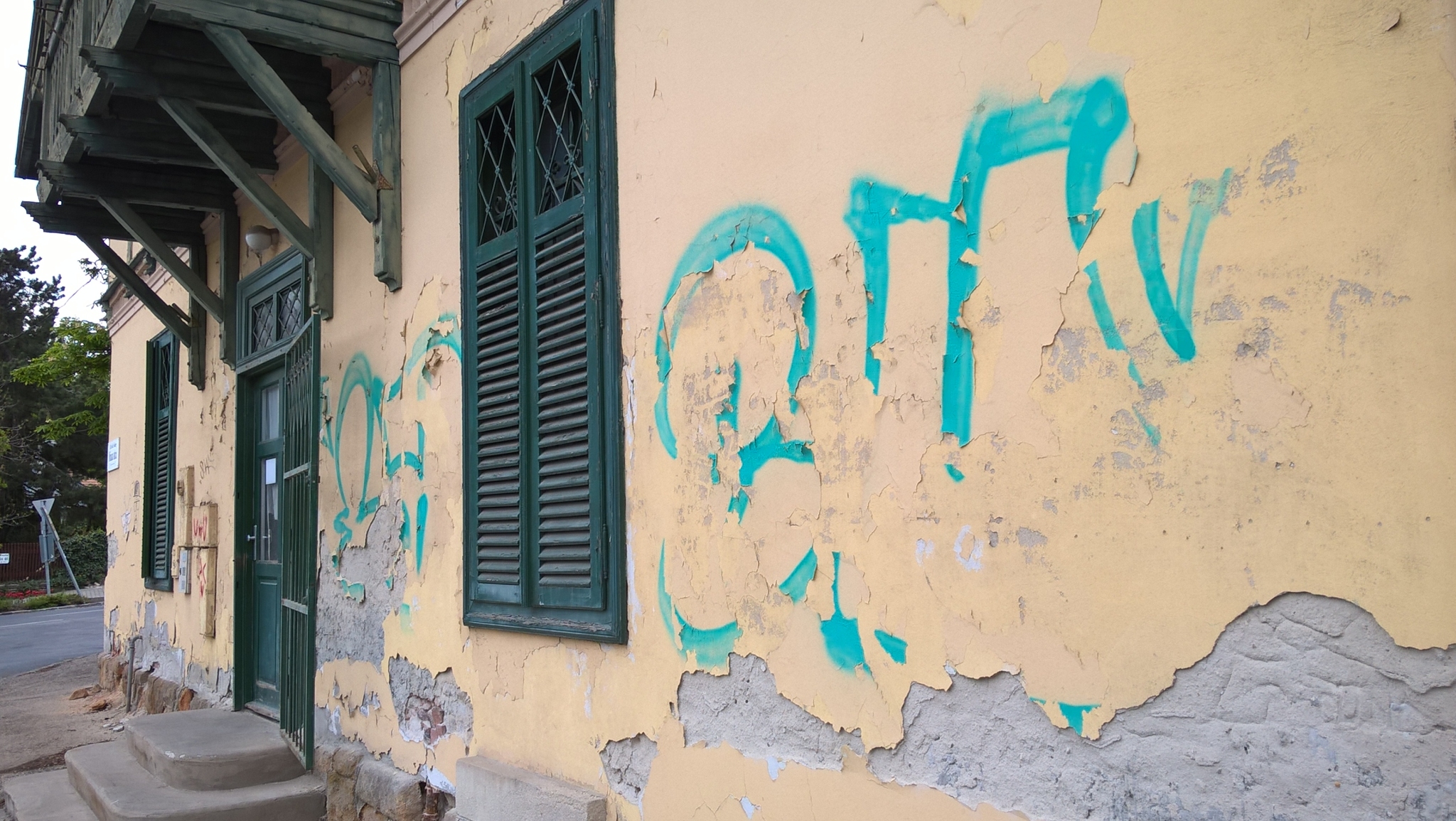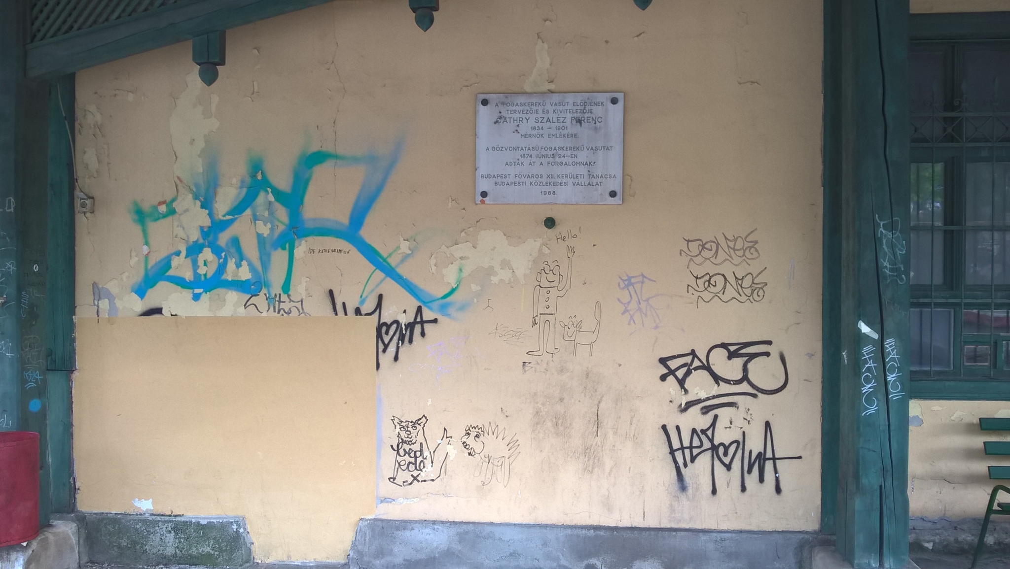 Graffitikkel van összefirkálva a fogaskerekű svábhegyi megállója.