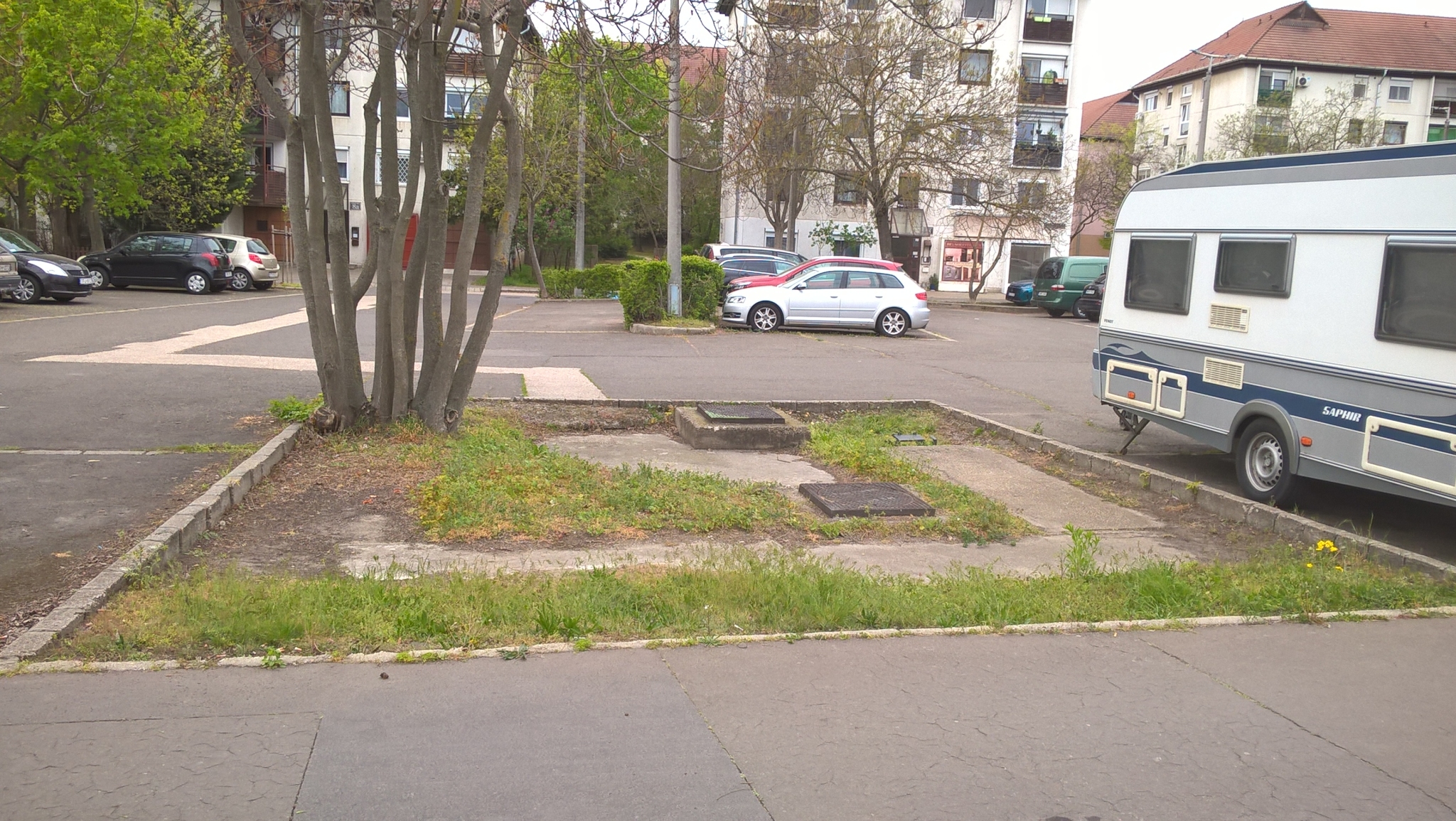 Elhanyagolt terület a parkolóban. Le lehetne térkövezni, aszfaltozni.