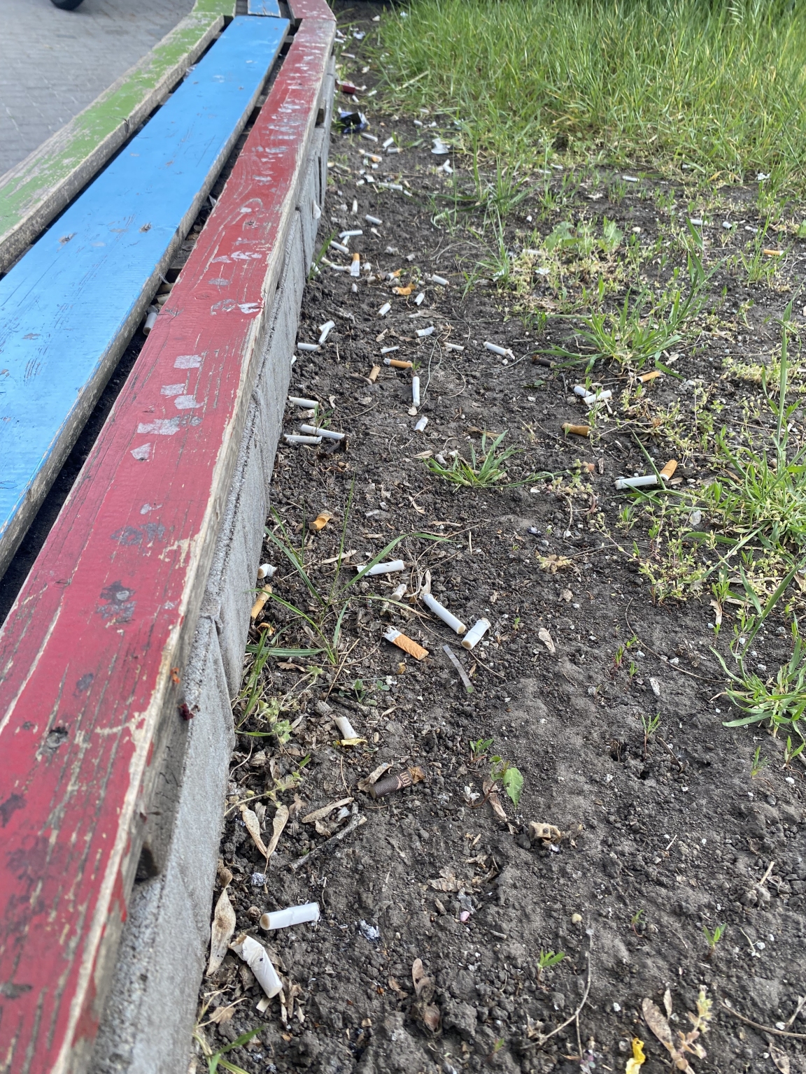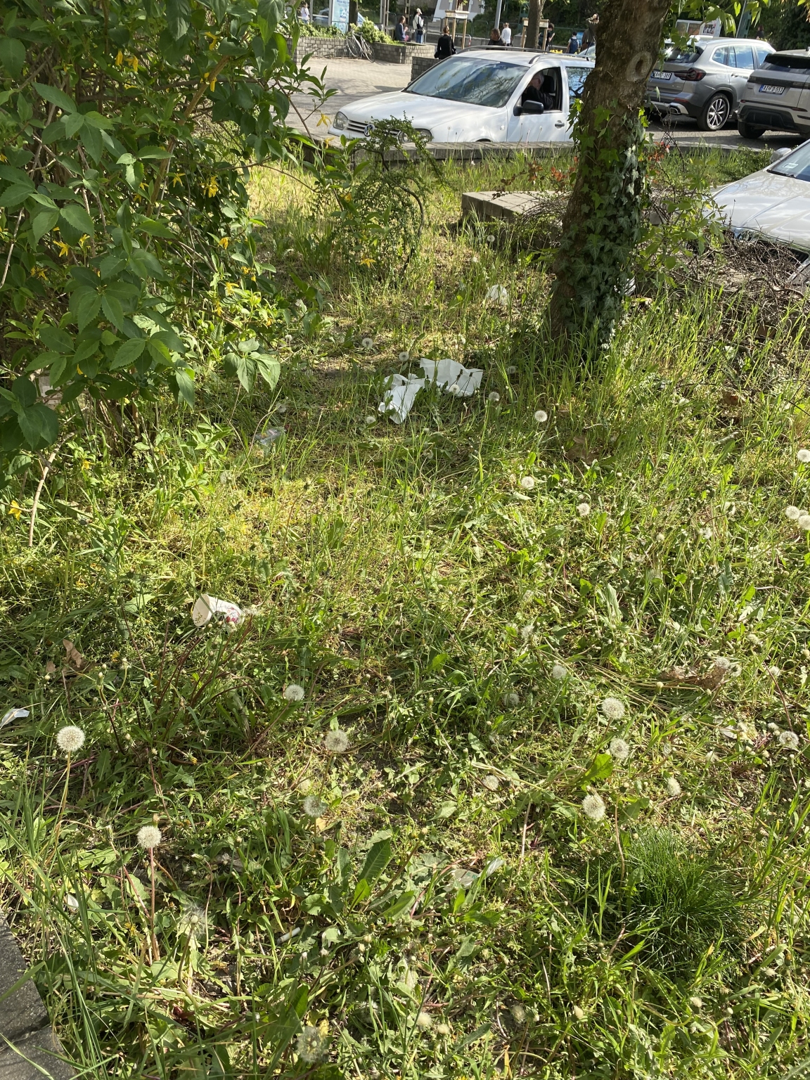 A Budagyöngye parkoló, különösen a virágágyások, folyamatosan tele vannak eldobált cigarettacsikkekkel és szeméttel. A terület rendszeresen így néz ki. A csikkek eldobálása szabálysértés, mégsem történik semmilyen érdemi intézkedés. A helyszín már nem egyszerűen rendezetlen, hanem kifejezetten undorító.